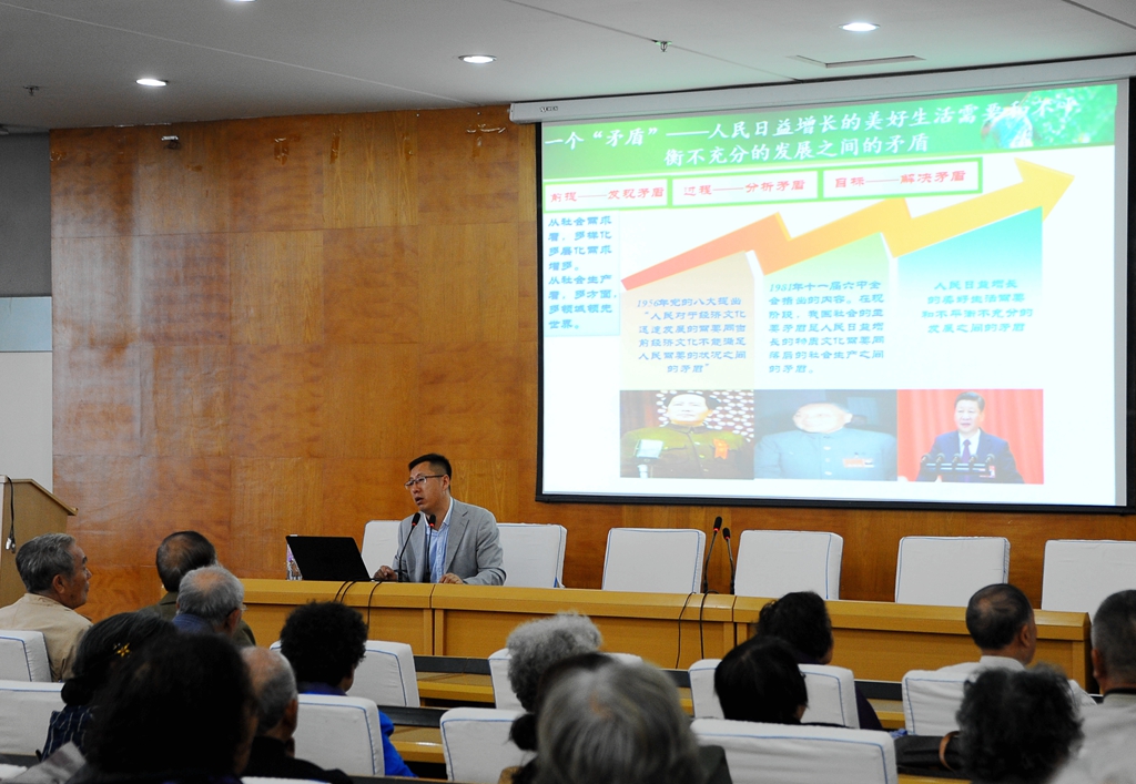会上,校党的十九大精神宣讲团成员、马克思主义学院中国近现代史纲要教研部主任、硕士生导师张春波副教授以《“数”说党的十九大》为题,从新时代、新矛盾——进行伟大斗争,新理论、新思想——建设伟大工程,新任务、新举措——推进伟大事业,新使命、新征程——实现伟大梦想等四个方面阐释了党的十九大的“新”。他指出,只有进行新的伟大斗争才能开创新时代,解决新矛盾,只有以马克思主义中国化最新成果——习近平新时代中国特色社会主义思想为行动指南,才能建设新的伟大工程。