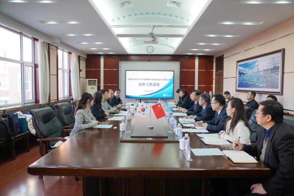 郝文斌期望此次交流会议能够成为加强两校合作的重要契机,并对下一步重点合作领域提出建议:一是加强校际学生交流,促进互学互鉴。开展硕士短期交流项目、冬夏令营研学项目等,增进学生间的互动与理解,为推动区域内国家之间的友好合作作出积极贡献。二是开展硕士、博士项目,贯通本硕博人才培养通道。通过开展硕士双学位项目、博士项目,贯通硕博人才培养通道,推动对韩合作形成机制化、常态化人才培养体系。三是深化学术交流,实现优势学科互补。依托双方优势学科资源,两校专家学者深化交流合作,共同推动科研创新与学科建设。四是举办中外合作办学项目,推动两校合作向高水平发展。在两校已有合作基础上,适时启动硕士层面中外合作办学项目申报,培养高水平国际化复合型人才,推动两校合作向高水平发展。五是搭建文化交流平台,增进文明交流互鉴。hg0022体育皇冠地址历史文化底蕴深厚、特色优势鲜明、充满发展潜力,通过两校多领域交流合作,促进彼此相互了解,深化友谊,增进文化认同与尊重,促进中韩两国世代友好。