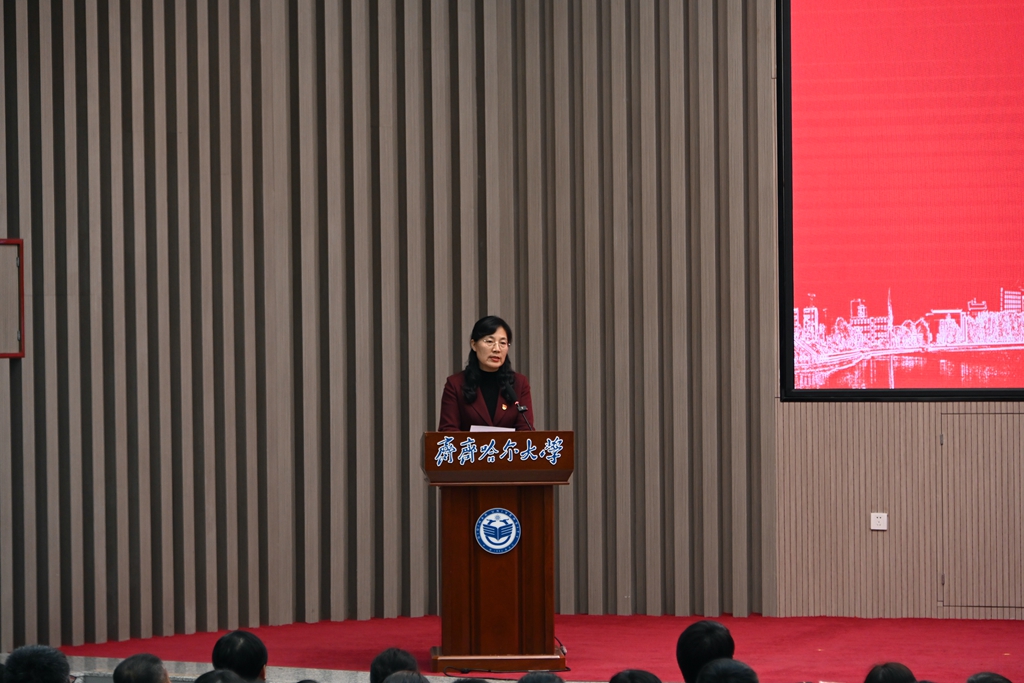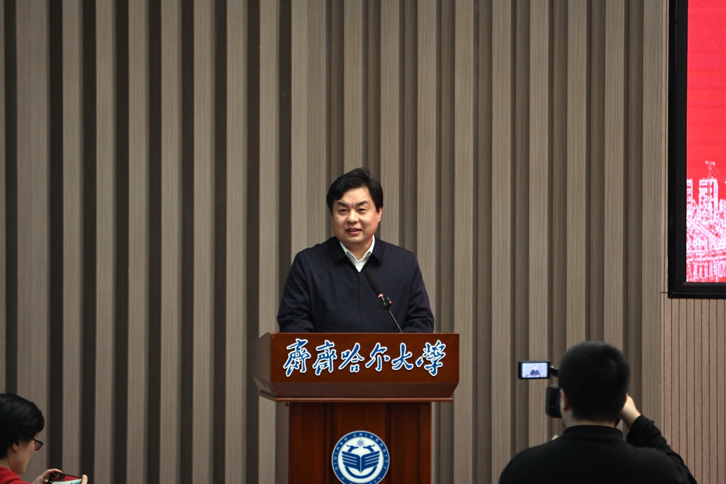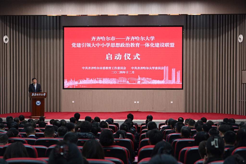 12月10日下午,齐齐哈尔市—hg0022体育皇冠地址党建引领大中小学思想政治教育一体化建设联盟启动仪式在日新大厦四楼报告厅举行。齐齐哈尔市委副书记、市委教育工委书记刘振江,齐齐哈尔市副市长高淑春,我校党委书记丁宏,校长、党委副书记郝文斌,党委副书记齐宏伟,黑龙江省民宗委文化宣传教育处处长吴鹏,齐齐哈尔市教育局局长、市委教育工委副书记姜林出席仪式。仪式由校党委副书记张文治主持。