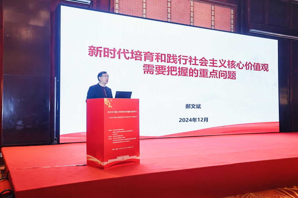 我校校长郝文斌教授受邀参会并作主旨报告。他以《新时代培育和践行社会主义核心价值观的重要问题》为主题,从深刻把握习近平总书记关于培育和践行社会主义核心价值观的重要论述,新时代培育和践行社会主义核心价值观的重要性紧迫性、重点场域、关键性问题和实践路径等五个方面阐述了观点和见解。郝文斌还参加了会议分论坛,同与会学者进行深入研讨、广泛交流,共同探讨社会主义核心价值观建设常态化制度化等理论和实践问题。