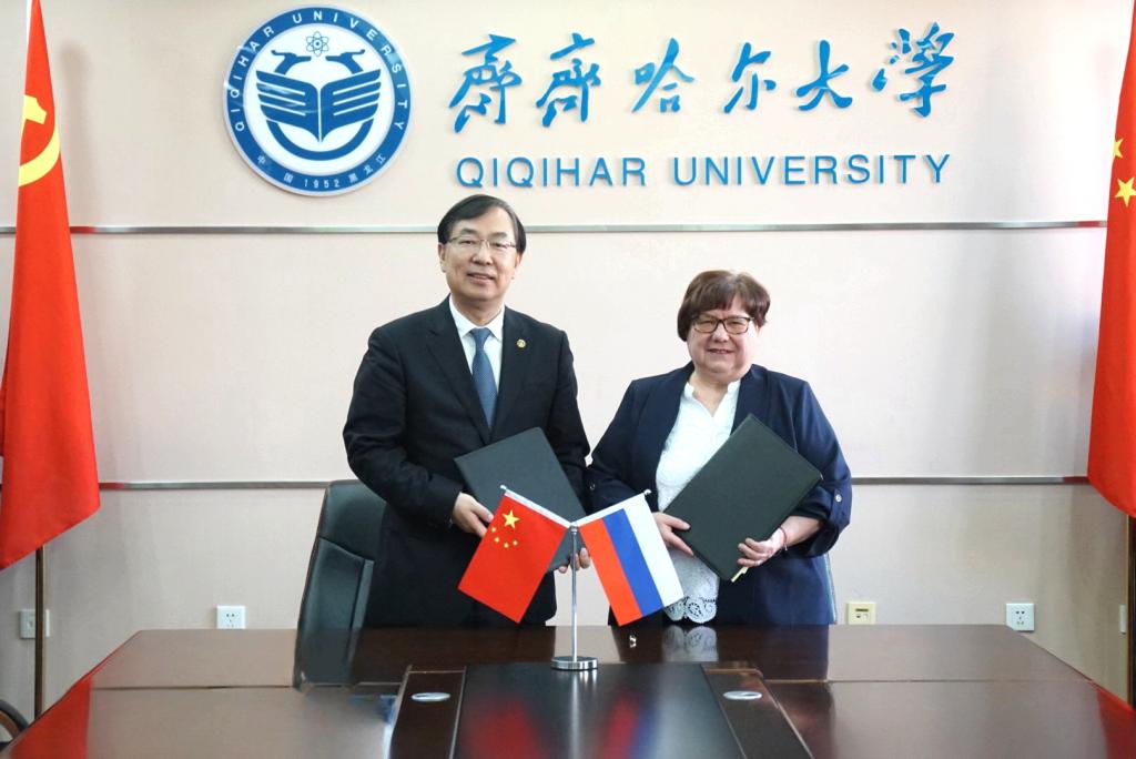 郝文斌与叶郭洛娃·卡丽娜·维克多洛夫娜代表双方签署合作协议。