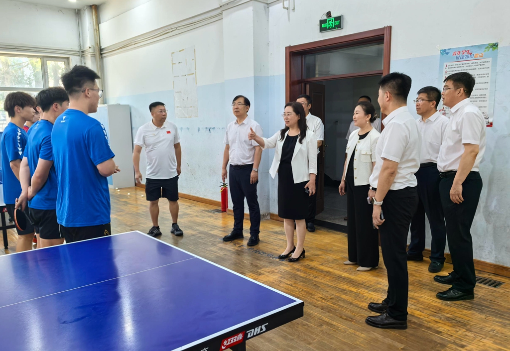 在训练现场,校领导观看了运动员们的训练展示,对他们刻苦训练的精神和扎实的专业技能给予肯定,并详细询问了运动员们的训练强度、身体状况以及生活需求,鼓励大家保持良好的心态,劳逸结合,确保以最佳的身体状态投入到比赛中。
