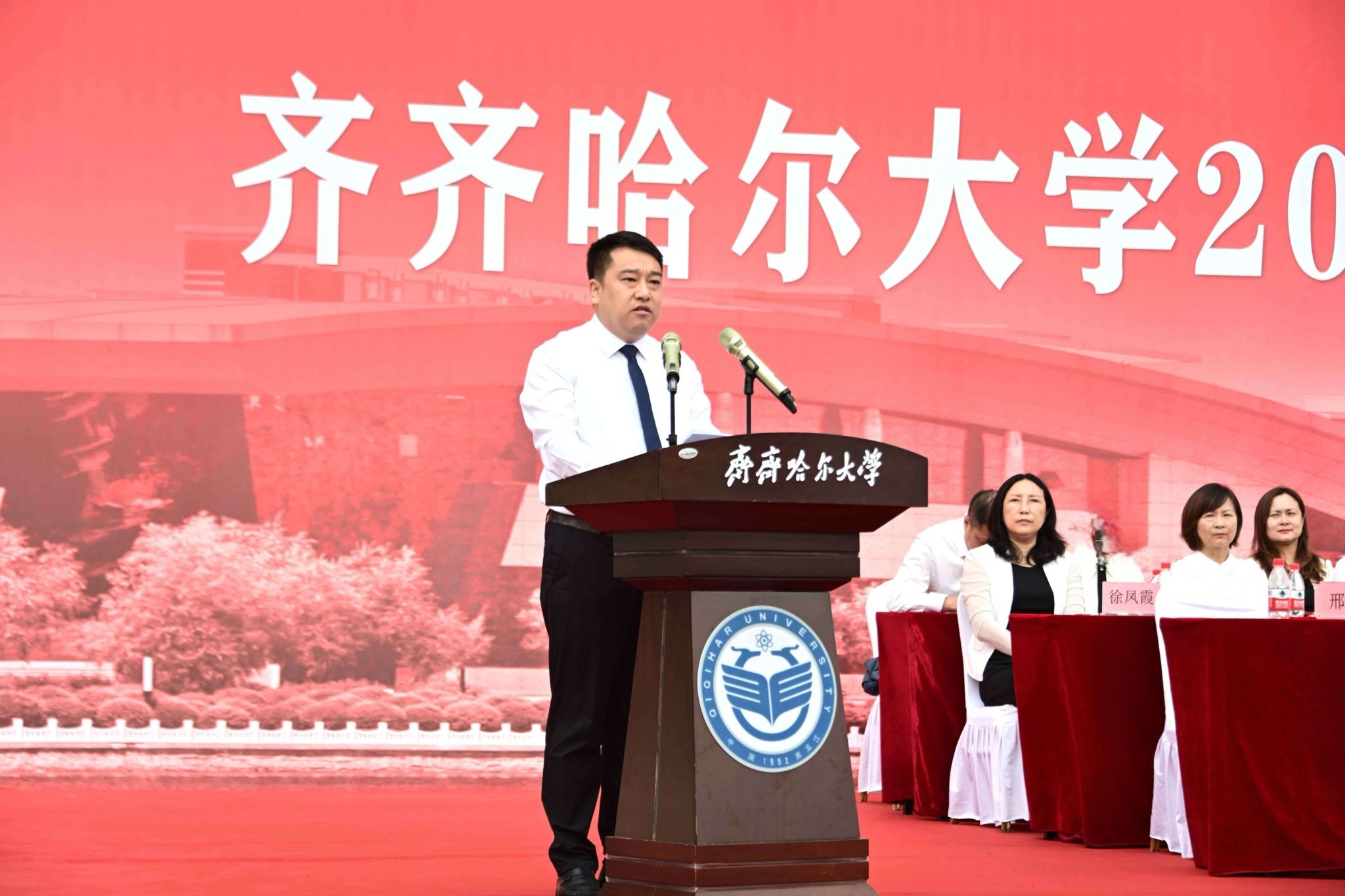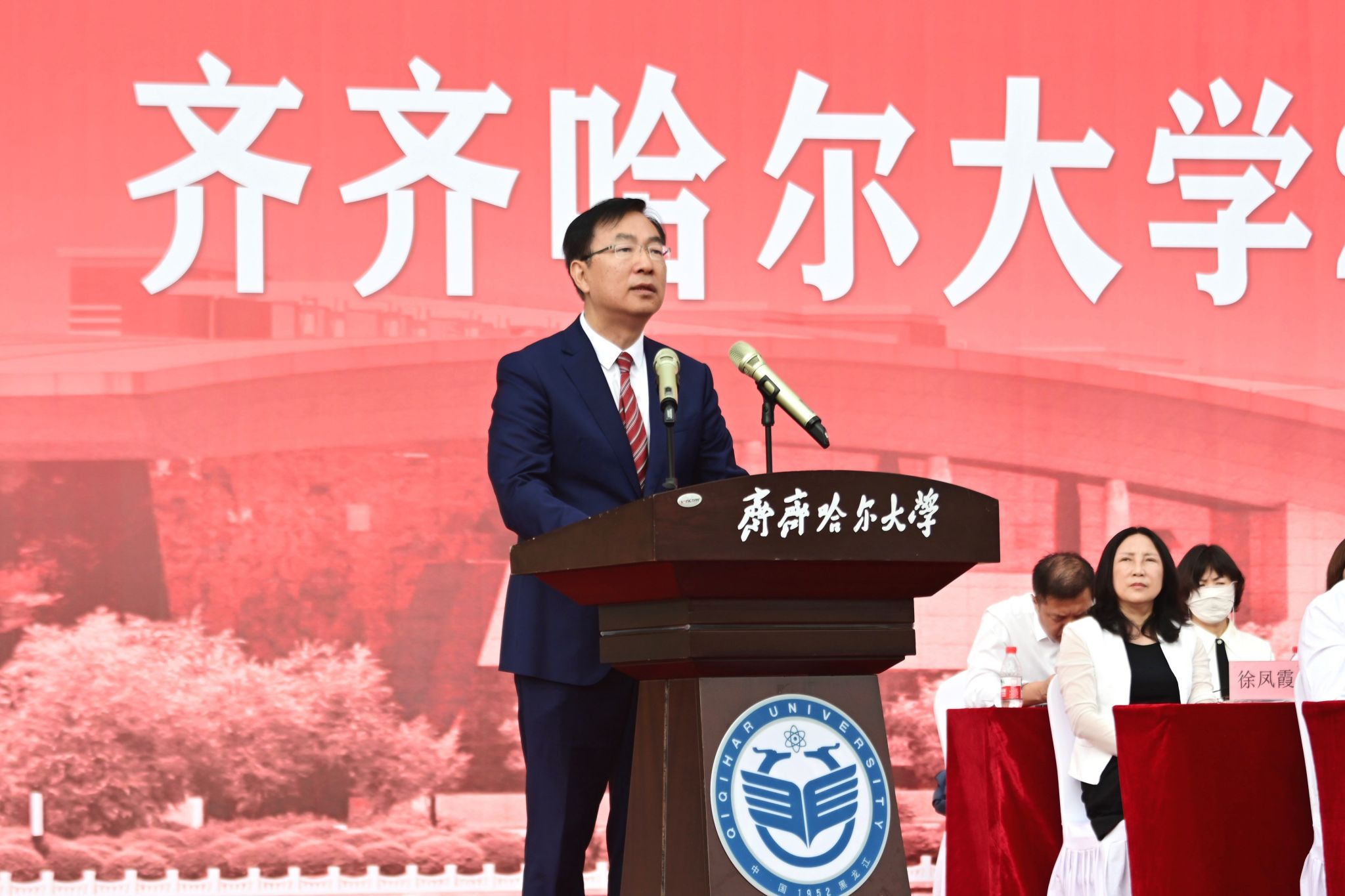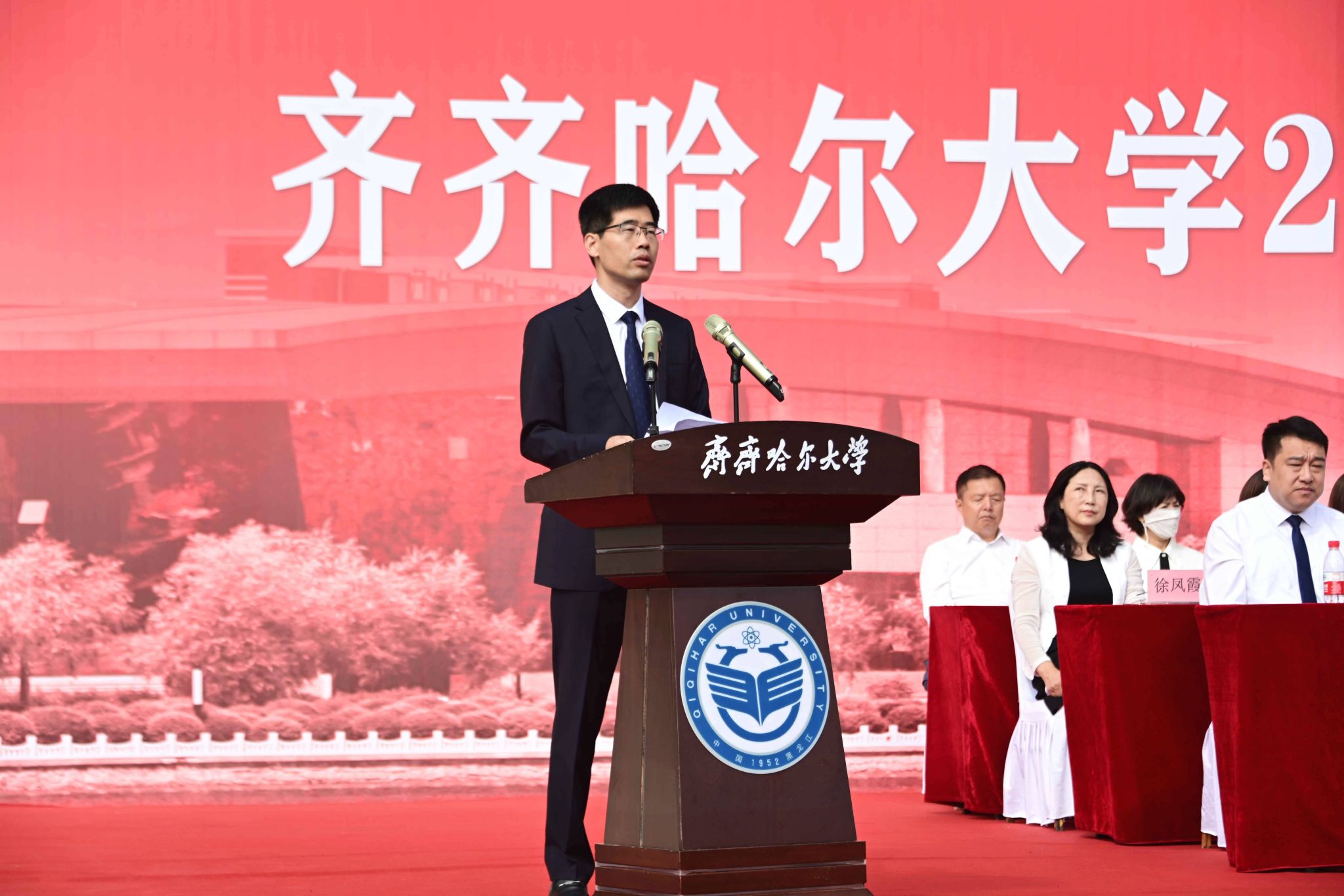 他表示,英雄的精神滋养孕育了扎根北疆的齐大,在70余年的办学历程中,“担当”二字始终是齐大最鲜明的注脚。希望同学们要像历届齐大学子一样,虔诚守护信仰,以赤子之心,在充满光荣和梦想的新征程上书写对党和国家的无限忠诚,自觉把“小我”融入民族复兴“大我”的时代洪流之中,结合国家需要与个人兴趣,沉心深耕学业,以“日拱一卒、聚沙成塔”的韧劲,让大学生活过得有意义、有价值!