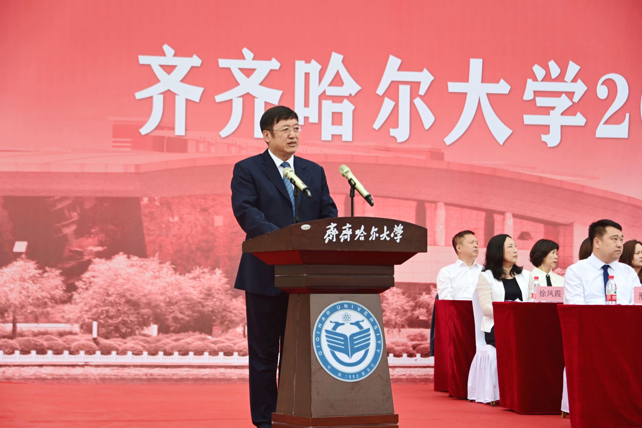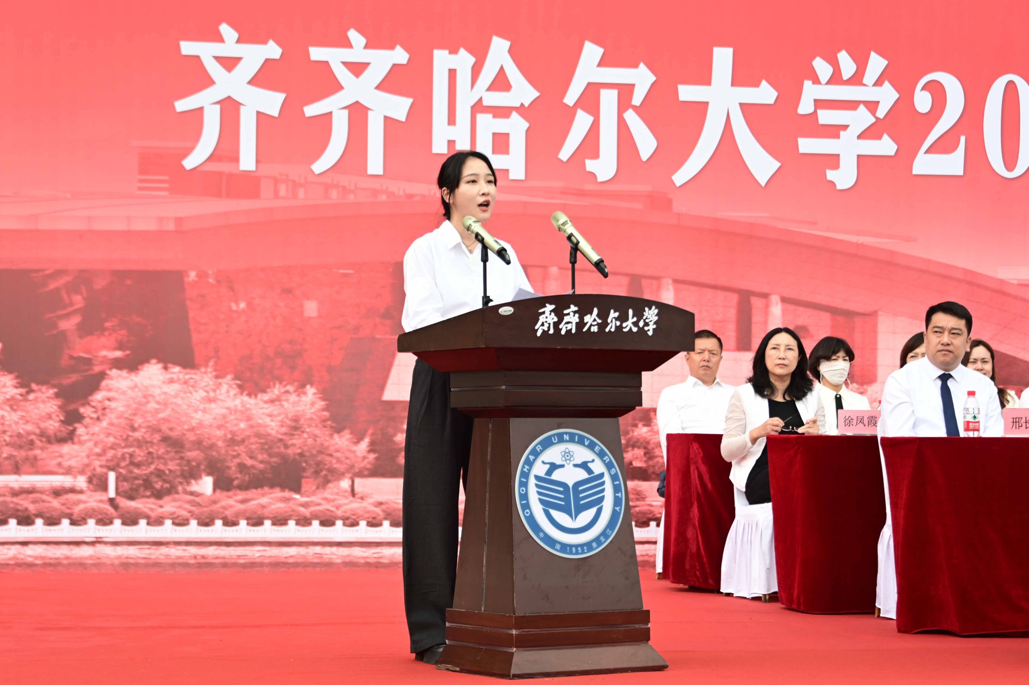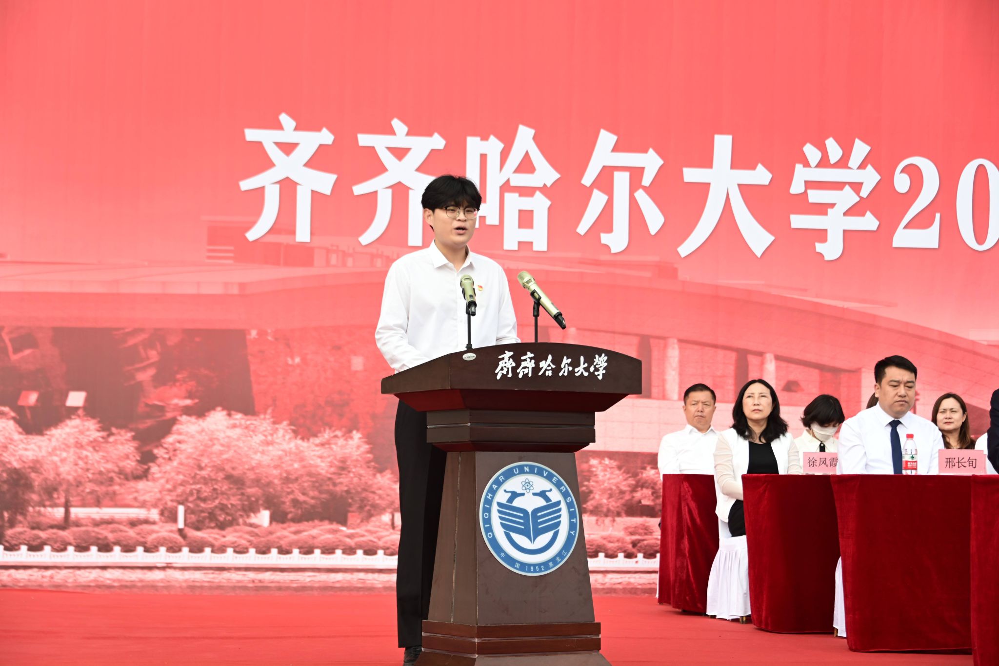 他表示,英雄的精神滋养孕育了扎根北疆的齐大,在70余年的办学历程中,“担当”二字始终是齐大最鲜明的注脚。希望同学们要像历届齐大学子一样,虔诚守护信仰,以赤子之心,在充满光荣和梦想的新征程上书写对党和国家的无限忠诚,自觉把“小我”融入民族复兴“大我”的时代洪流之中,结合国家需要与个人兴趣,沉心深耕学业,以“日拱一卒、聚沙成塔”的韧劲,让大学生活过得有意义、有价值!
