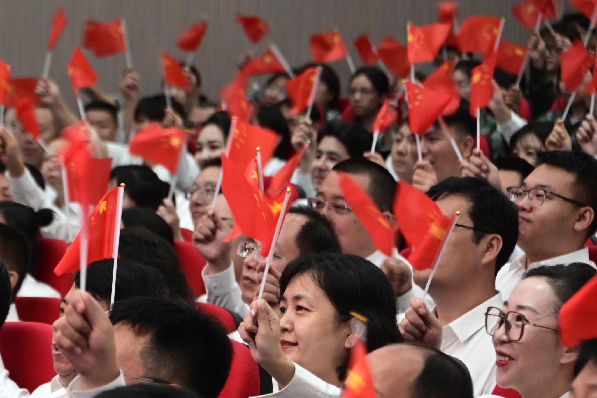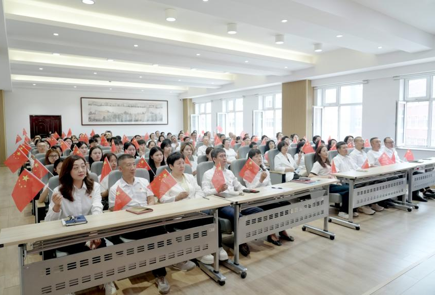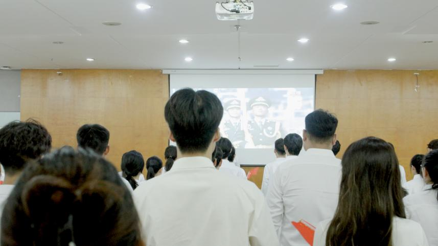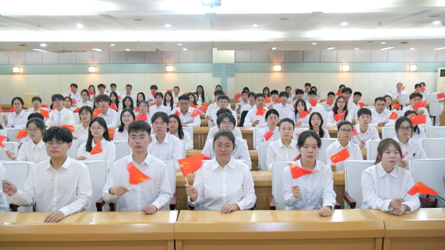 天安门广场上,空中护旗梯队呼啸而过。千里之外的hg0022体育皇冠地址校园内,全校师生挥舞着国旗,共迎这伟大庄严的时刻。