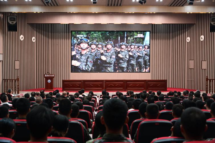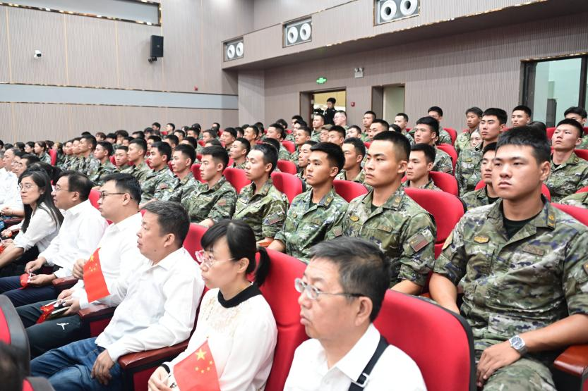 阅兵正式开始时,嘹亮的国歌声通过屏幕传来,全体师生庄严肃立,与现场同频,齐声高唱,雄壮的旋律在校园的每一个角落回荡。