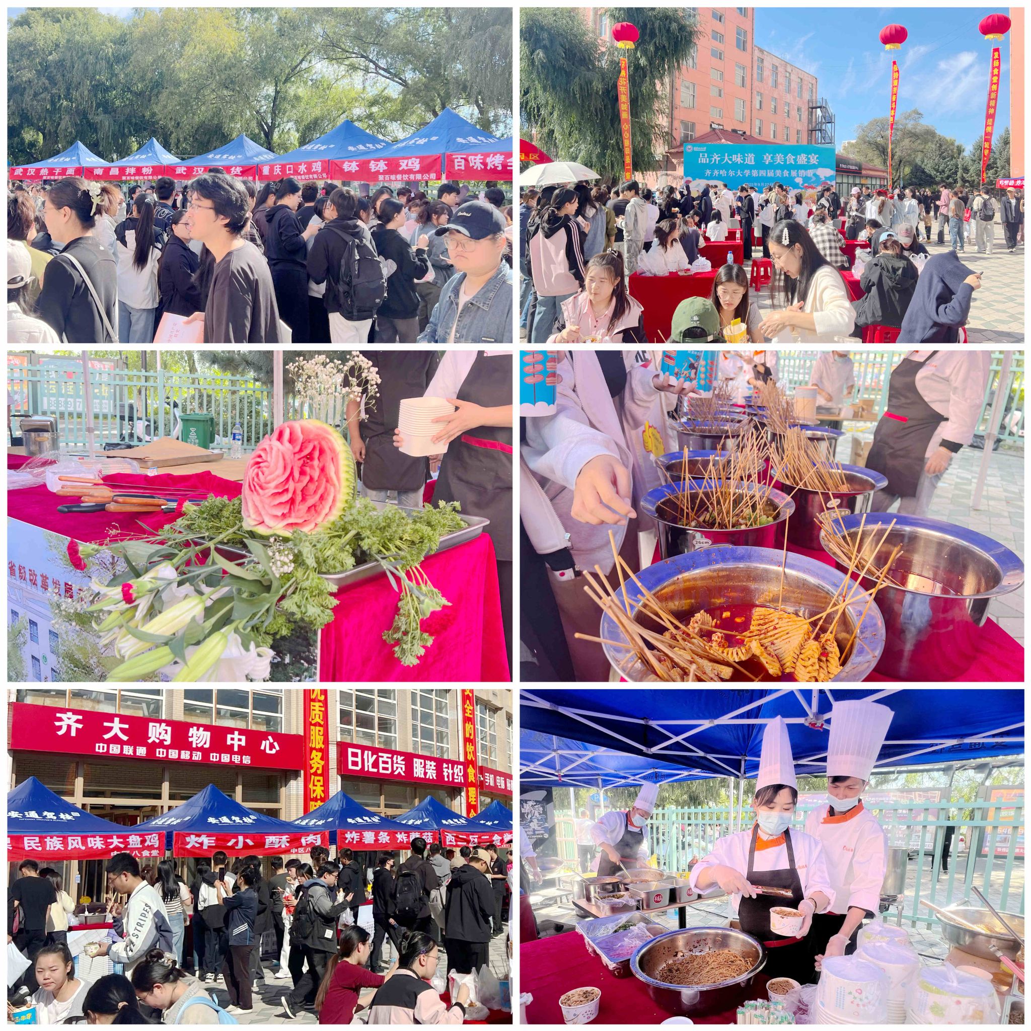 九月齐大,秋高气爽,景色宜人。在国庆、中秋双节来临之际,为营造欢乐祥和的校园文化氛围,丰富师生校园生活,为广大师生提供优质餐饮服务,9月27日上午10:30学校在中区购物中心南广场举办第四届校园美食展销节。本次活动以“品齐大味道,享美食盛宴”为主题,由后勤管理处牵头,联合多部门共同策划组织,吸引了众多师生踊跃参与。