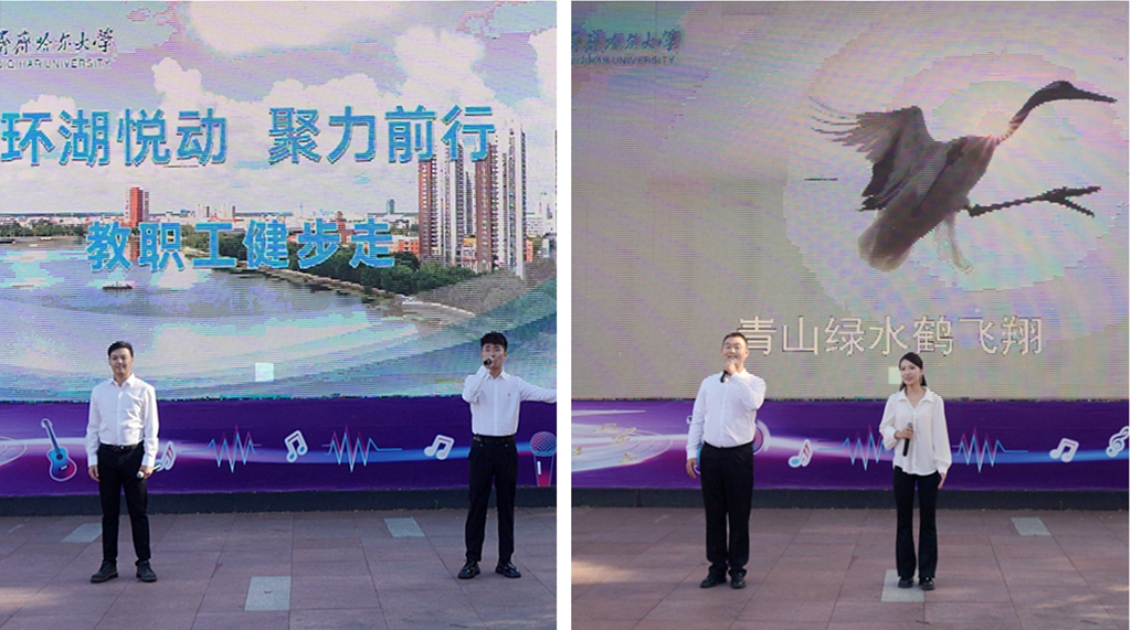 音乐与舞蹈学院的师生献上了歌曲《致吾辈》《逐梦远方》,激昂的旋律和深情的演唱展现了齐大师生积极向上的精神风貌。