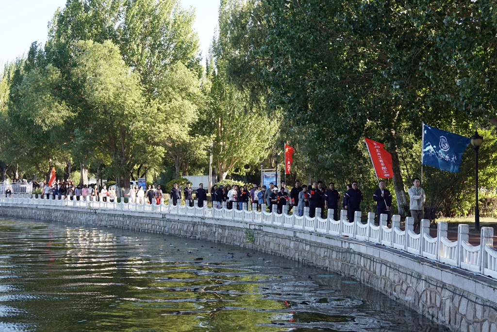 教职工们精神抖擞,沿着风景如画的劳动湖岸线健步前行。活动特别在音乐广场和科技之光广场设置了抽奖点,教职工们积极参与互动,现场欢声笑语不断,气氛热烈融洽。