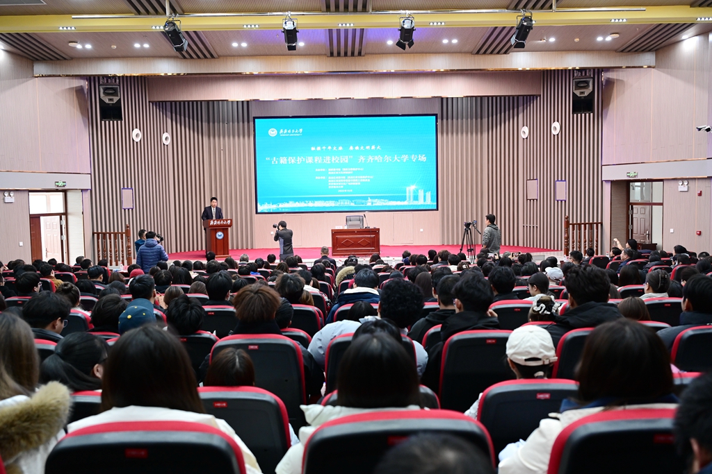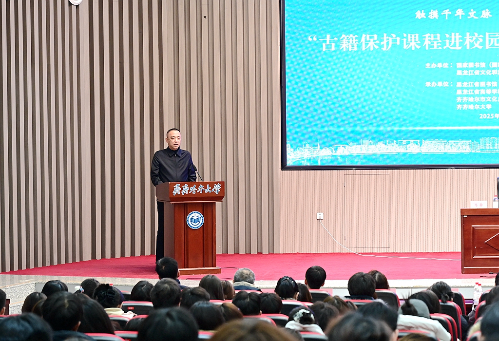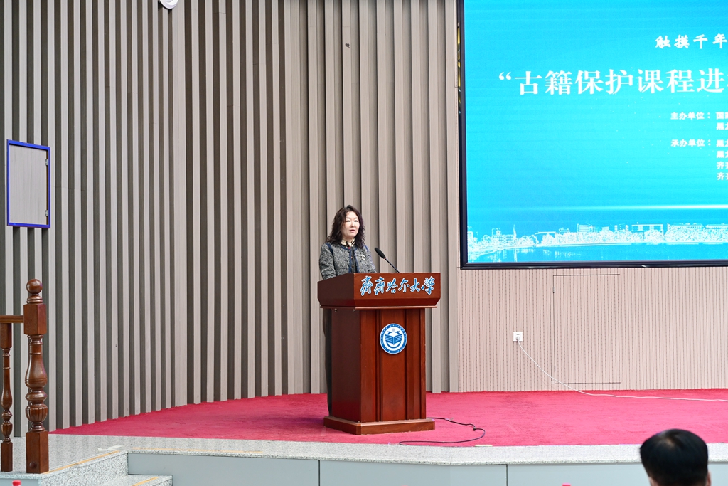 黑水琳琅映鹤城,寒域遗珠绽芳华。10月29日,全省公共图书馆领导及我校师生代表400余人齐聚日新大厦,共同参与黑龙江省“触摸千年文脉,赓续文明薪火——古籍保护课程进校园”hg0022体育皇冠地址专场活动。活动由国家图书馆(国家古籍保护中心)、黑龙江省文化和旅游厅主办,黑龙江省图书馆(黑龙江省古籍保护中心)、黑龙江省高等学校图书情报工作委员会、齐齐哈尔市文化广电和旅游局、hg0022体育皇冠地址承办。
