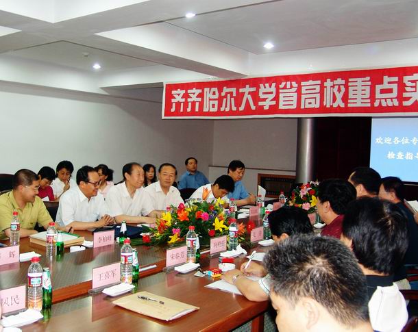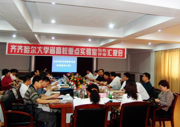 我校精细化工省高校重点实验室于2002年6月经省教育厅正式批准建设。此次验收专家组由来自哈尔滨工业大学、哈尔滨工程大学、大庆石油学院、黑龙江大学、哈尔滨师范大学、黑龙江科技大学等单位的相关学科的专家组成。专家组认真听取了我校精细化工重点实验室主任郭祥峰教授关于“十五”期间实验室的建设情况的汇报,并深入实验室进行了实地考察,并认真听取有关研究人员的情况介绍。专家们在听取汇报、审核材料、实地考察后经过认真讨论,对我校精细化工重点实验室的建设工作给予了高度评价。一致认为,在省教育厅的支持下,在校领导的重视下,精细化工省高校重点实验室经过三年多的建设,经费投入力度较大,在承担课题、科研经费到位、研究成果、人才培养以及学术论文、学术交流等方面,总体上超过了“建设项目议定书”的指标要求,在本省形成了精细化工有特色的实验室,基础研究成绩比较突出,达到了预期建设目标。同时,专家组希望实验室在“十一五”期间制订更高的建设目标,主持高层次科研项目,结出更好的科研成果,发表更多高水平的学术论文,并且加强与国外的交流,组织一定层次的国内外会议,扩大学科的影响。