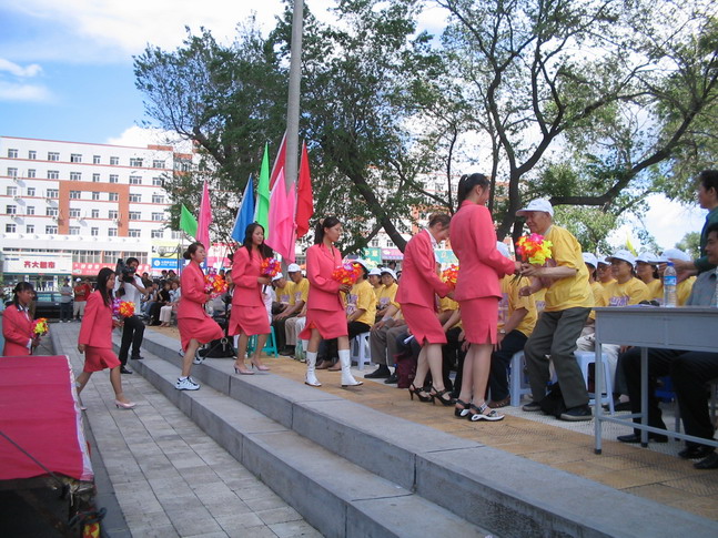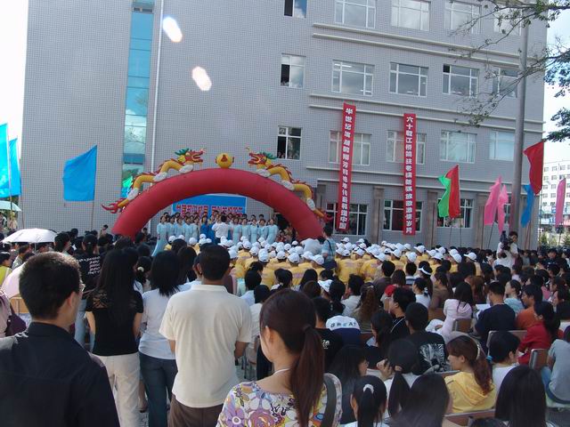 6月10日下午,我校人文楼东侧的校园广场彩旗招展,乐曲悠扬,“六十载江桥鸽驻老骥心骐放歌激情岁月,半世纪滨湖鹤翔芳桃李艳传薪和谐中国”的条幅在夏日阳光下鲜明醒目,人文学院与离退休工作处联合 “共建和谐校园 同创美好明天”的大型广场文艺演出隆重举行,校领导唱江华、王凤琴、姜守训、张忠恒、郑喜群等出席,离退休老干部合唱团及校党委组织部、宣传部、离退休工作处、校团委等部门有关负责人和人文学院党政领导、师生等欢聚激情广场,倾情歌唱。