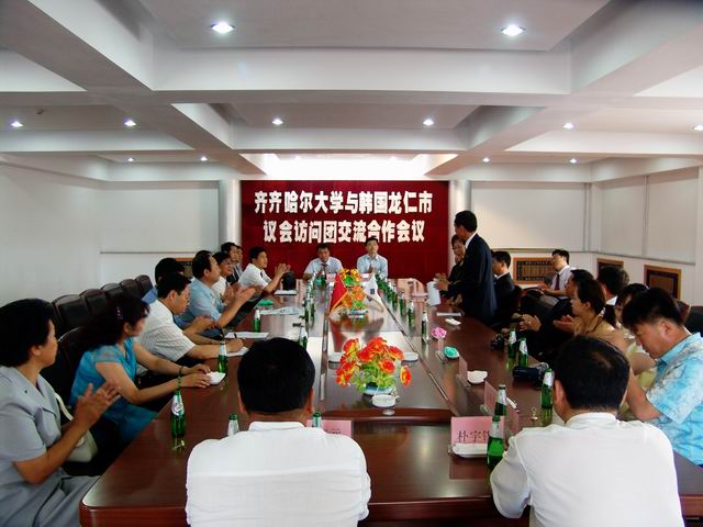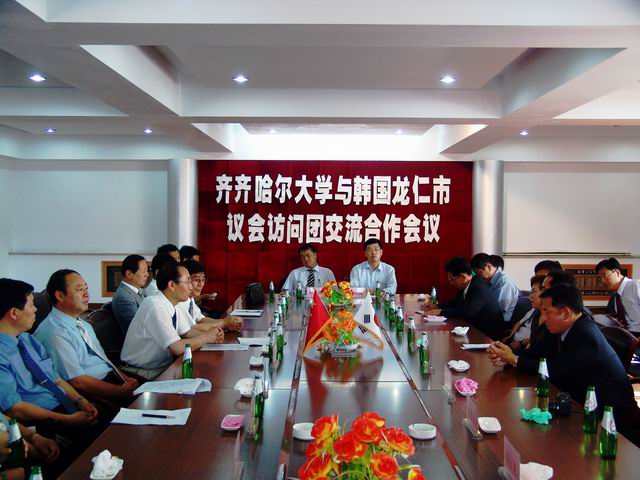 在我校培训中心会议室,宾主双方举行了会谈。校长唱江华代表学校对韩国客人来访表示欢迎,并简要介绍了学校发展概况;金顺庆先生也向我校领导简要介绍了韩国龙仁市的有关情况,双方在亲切友好的氛围中就有关交流与合作事宜交换了意见。