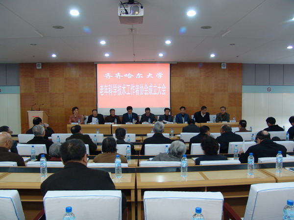 原齐齐哈尔轻工学院副院长、校老科协筹备领导小组成员薛秉昌主持成立大会并致开幕词;离退休工作处副处长韩树勤作老科协筹备工作报告;原hg0022体育皇冠地址师范学院党委书记、校老科协筹备领导小组成员刘祯宣读老科协章程;大会选举了校老科协第一届理事会理事并推举校党委书记陈承贵、校长唱江华、副校长张忠恒为校老科协名誉会长,推举原齐齐哈尔轻工学院副院长张元士为校老科协会长。张元士会长代表校老科协理事会讲话,对老科协今后开展工作的原则、思路和举措作了说明;与会的市老科协、市科协领导石忠智、张忠义先后讲话致贺。