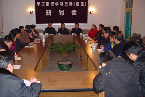 12月9日下午,学校党委部署开展的学工系统学习贯彻《中共中央国务院关于进一步加强和改进大学生思想政治教育的意见》研讨会在格校二楼会议室举行。副校长姜守训出席了研讨会,研讨会由学工处处长、团委书记刘健夫主持,校党委宣传部和各个学院主抓学生工作的领导及部分辅导员参加了研讨会。 刘处长说,《中共中央国务院关于进一步加强和改进大学生思想政治教育的意见》非常具体,非常实际,具有可操作性,反映了中共中央对加强和改进大学生思想政治教育高度重视。在全国,特别是在高校进行了广泛的学习和研讨。我校党委也非常重视,党委中心组首先进行了学习研讨,然后布置举行四个研讨会,我们今天的研讨会就是其中的一个。 在研讨会中,各个学院主抓学生工作的领导分别讲了话,针对本院的学生实际和现阶段学生的素质以及扩招等因素给学生工作带来的新的挑战,都作了深入的研讨。