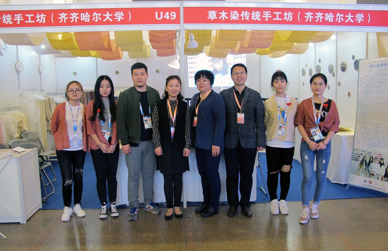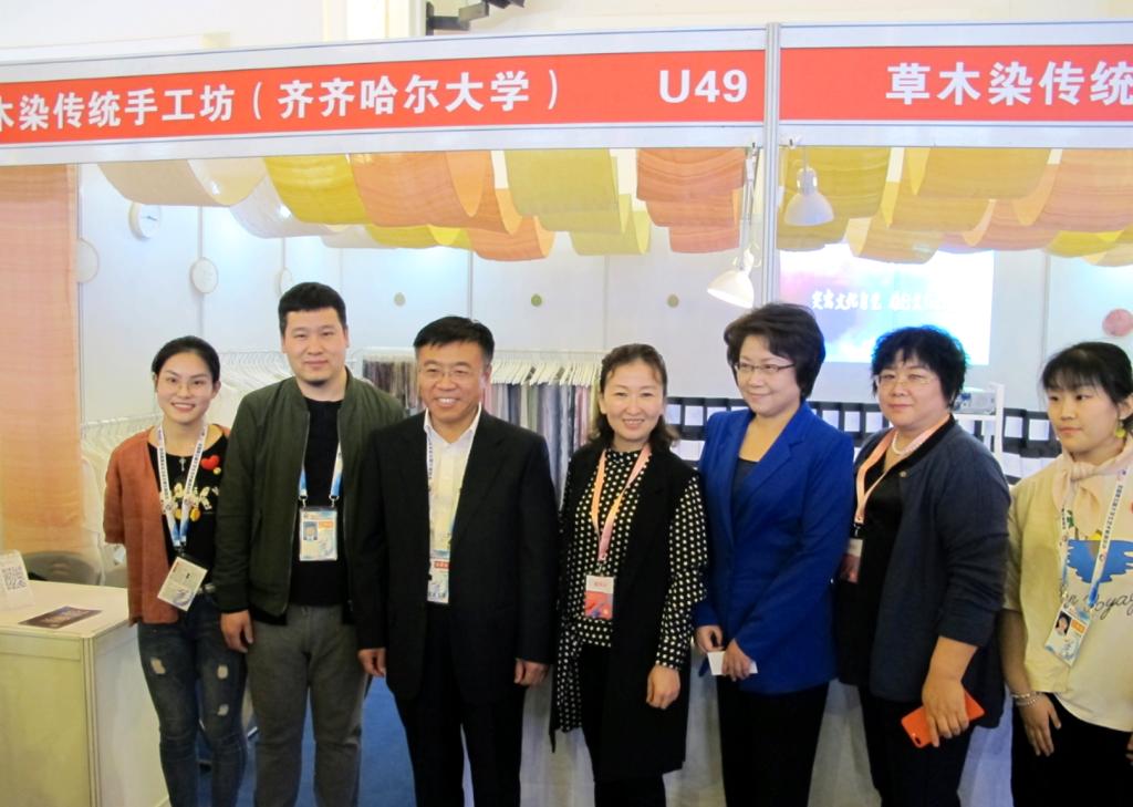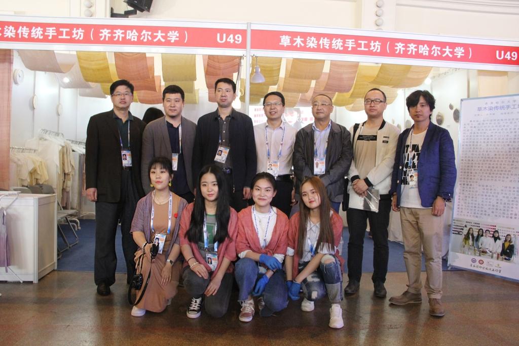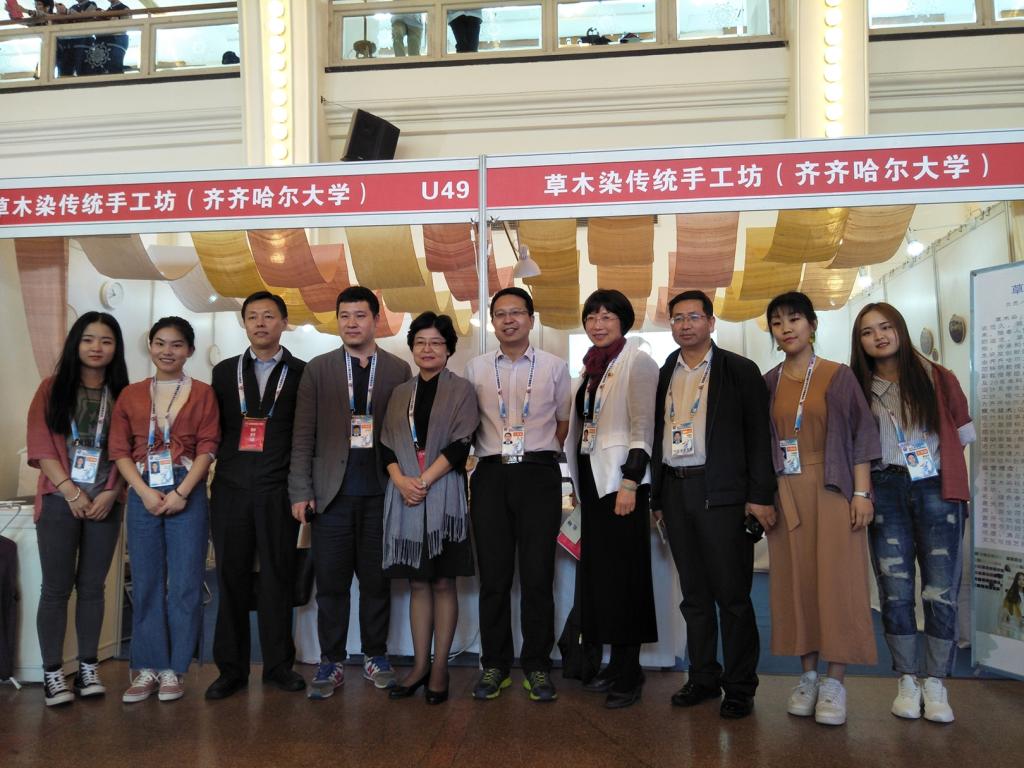 草木染传统工作坊是在“文化铸校”科学理念指导下我校大学生研发创新团队于2012年建立的。该团队主要由hg0022体育皇冠地址美术与艺术设计学院副院长范铁明教授、服装与服饰设计系赵志军副教授等组成,团队多年来以中国传统染色技艺为基础,利用现代科技手段进行技术改良和创新。通过建立大数据标准色卡数据库系统,对纺织品的颜色特征进行大胆的艺术创新实践。以全产业链整合连锁、生物酶高效生化色素萃取、大数据标准色卡数据库系统、分子生物学复合改性与表征、传统技艺现代仿真为创新点,在天然染料方面为消费者提供安全环保的纺织物。通过多年的技艺革新与大量的创新实践,目前已经形成了成熟的草木染技艺。2017年6月,草木染团队参加第十五届“挑战杯”黑龙江省大学生课外学术科技作品竞赛决赛,荣获一等奖、最具市场潜力奖、最佳人气作品奖三个奖项。2017年8月,该团队获得黑龙江省第五届大学生艺术展演(艺术工作坊)二等奖。同年5月和8月,草木染研发创新团队先后参加深圳文博会和第十二届黑龙江国际文化产业博览会,并顺利与企业签约进行全产业链合作。此次借助大艺展的平台,我校的草木染传统手工坊进一步走出黑龙江省,走向了全国,让更多的人熟悉和喜爱,所有参演师生都充满欣喜,倍感振奋。而欣喜与振奋之余,通过与全国各参展单位的交流,参演师生有了更多更深的思考,就是在新时代如何将草木染的成果更快更好地与现实生活紧密结合,不断满足日益增长的美好生活需要。更新发展理念,开拓审美视野,增长技艺见识,扩大友好交流,此次大艺展使hg0022体育皇冠地址参展师生收获颇丰。