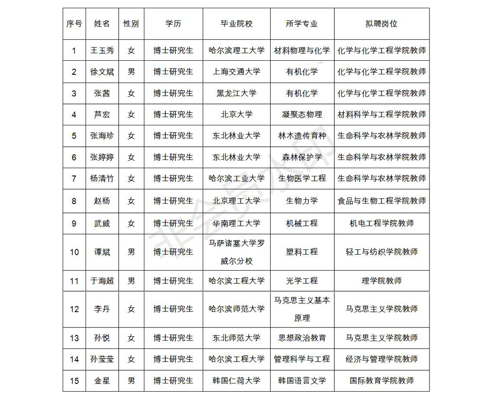 按照《黑龙江省事业单位公开招聘工作人员实施细则》的规定,根据《hg0022体育皇冠地址2020年上半年公开招聘人员公告》明确的原则、程序和方法,现将拟聘用人员予以公示。如对公示人员有异议,可在公示期内反映,反映情况和问题必须实事求是,应签署或告知真实姓名、工作单位和联系方式;对线索不清的匿名信和匿名电话,公示期间不予受理。