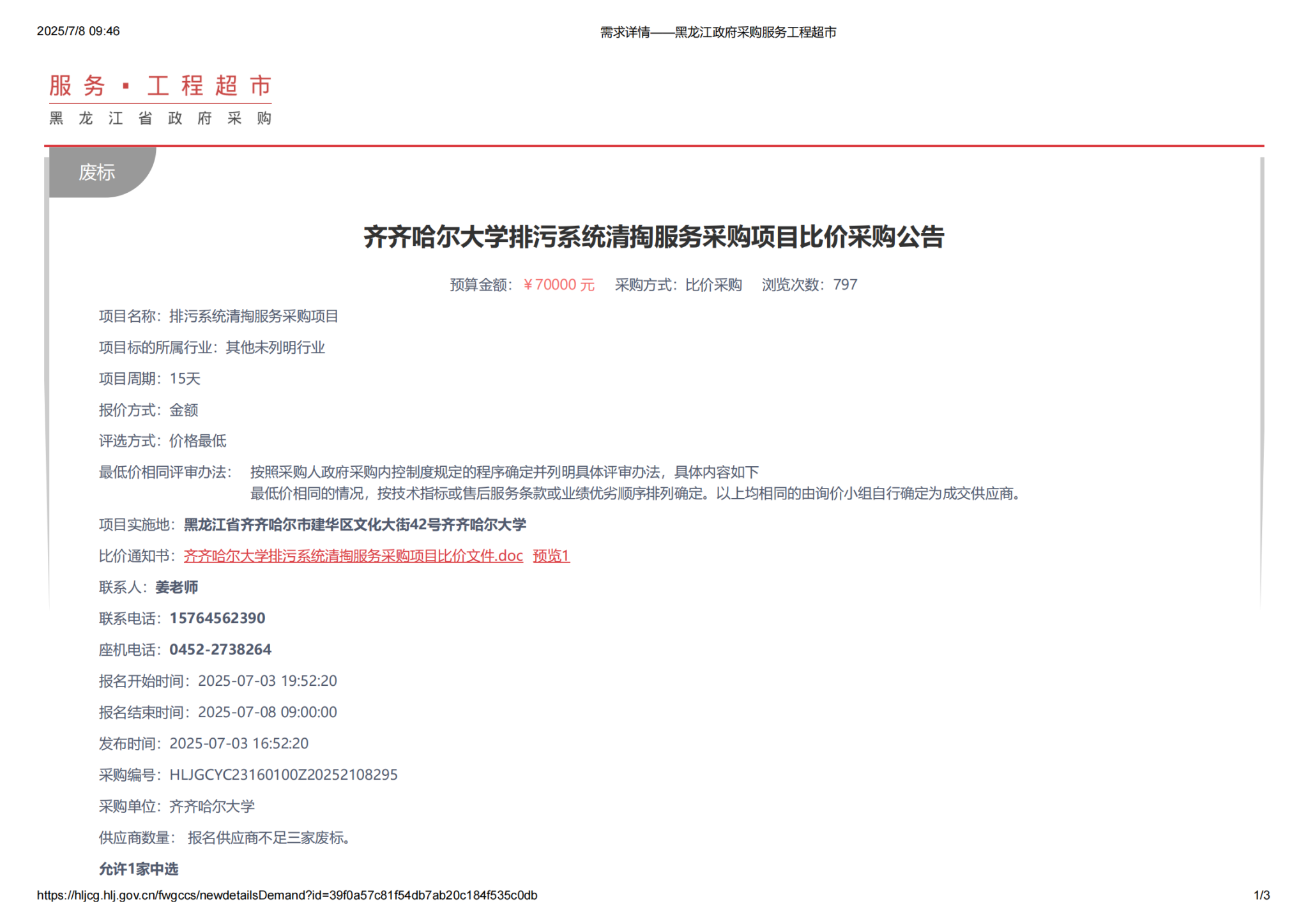 上一条:hg0022体育皇冠地址排污系统清掏服务采购项目(第2次)比价采购公告(转自黑龙江省政府采购网)