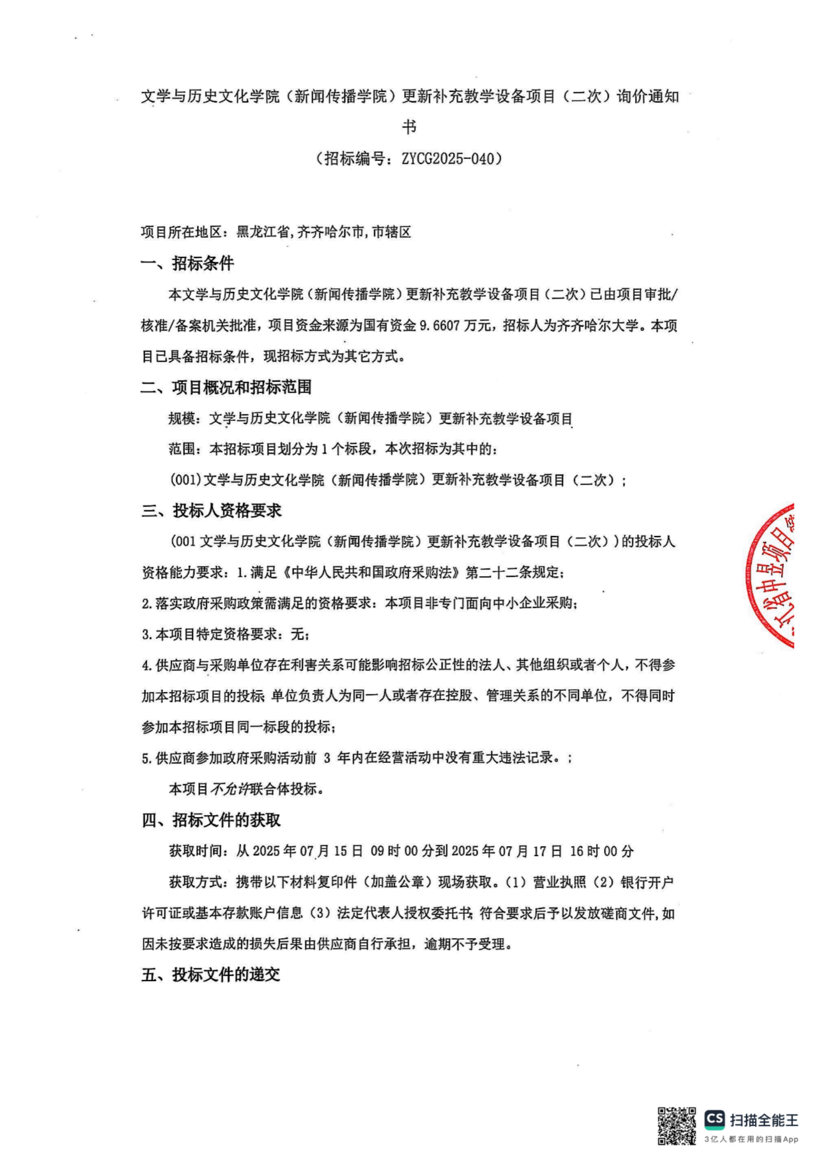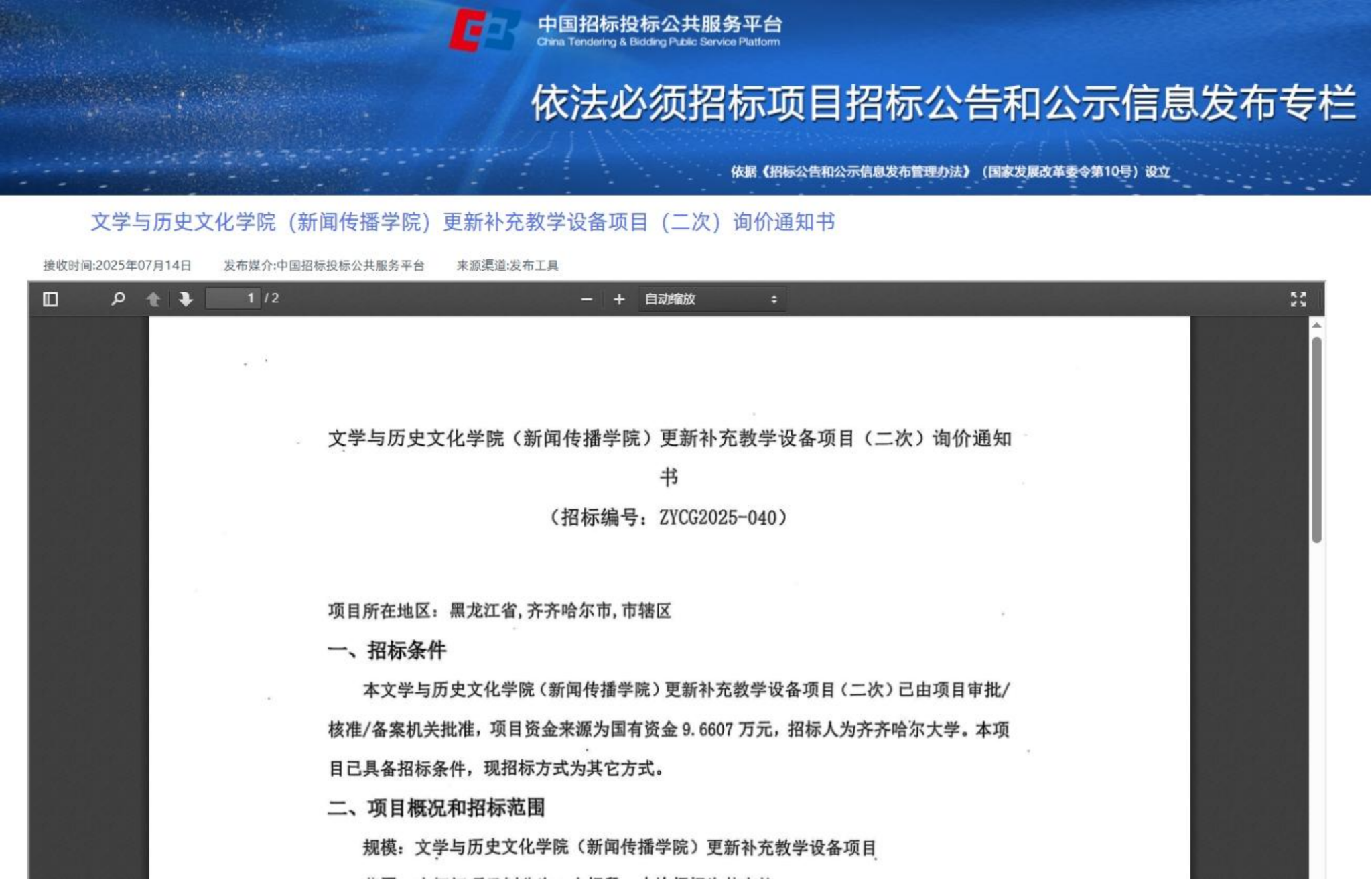 上一条:文学与历史文化学院(新闻传播学院)更新补充教学设备项目(二次)暂停公告(转自中国招标投标公共服务平台)