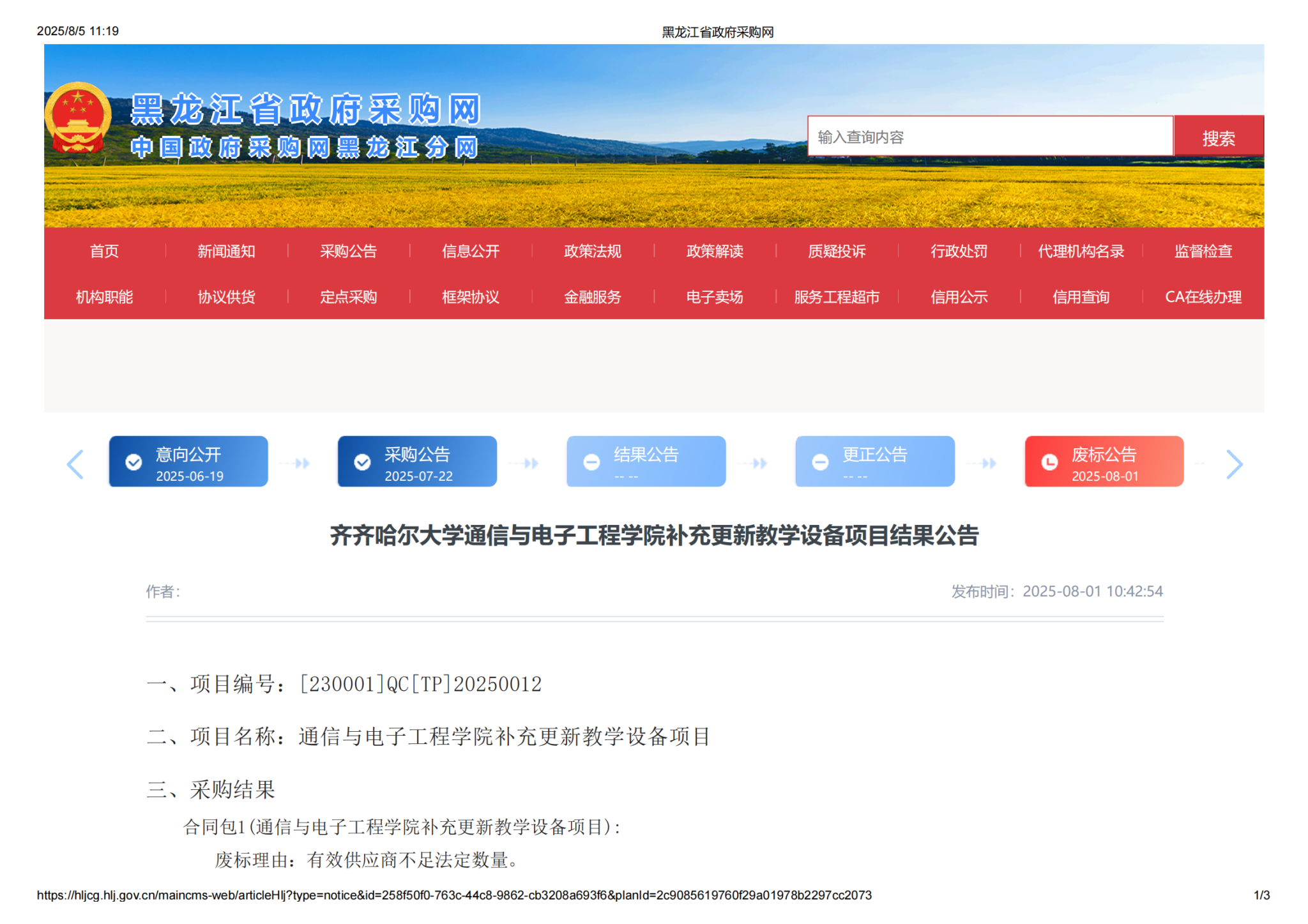 下一条:体育学院更新补充教学设备项目(二次)流标公告(转自中国招标投标公共服务平台)