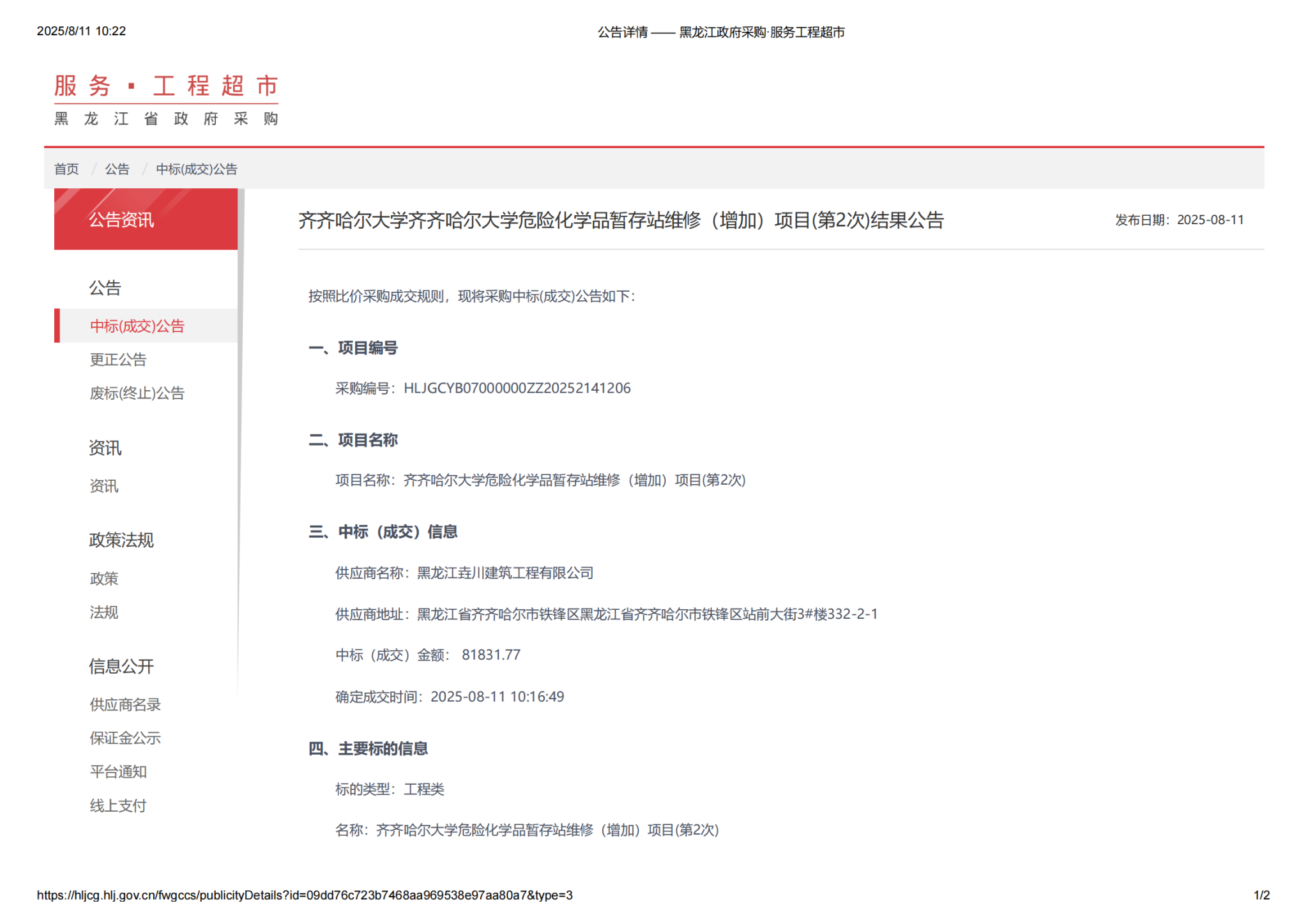 上一条:hg0022体育皇冠地址蛋白液相分析系统采购项目中标(成交)结果公告(转自黑龙江省政府采购网)