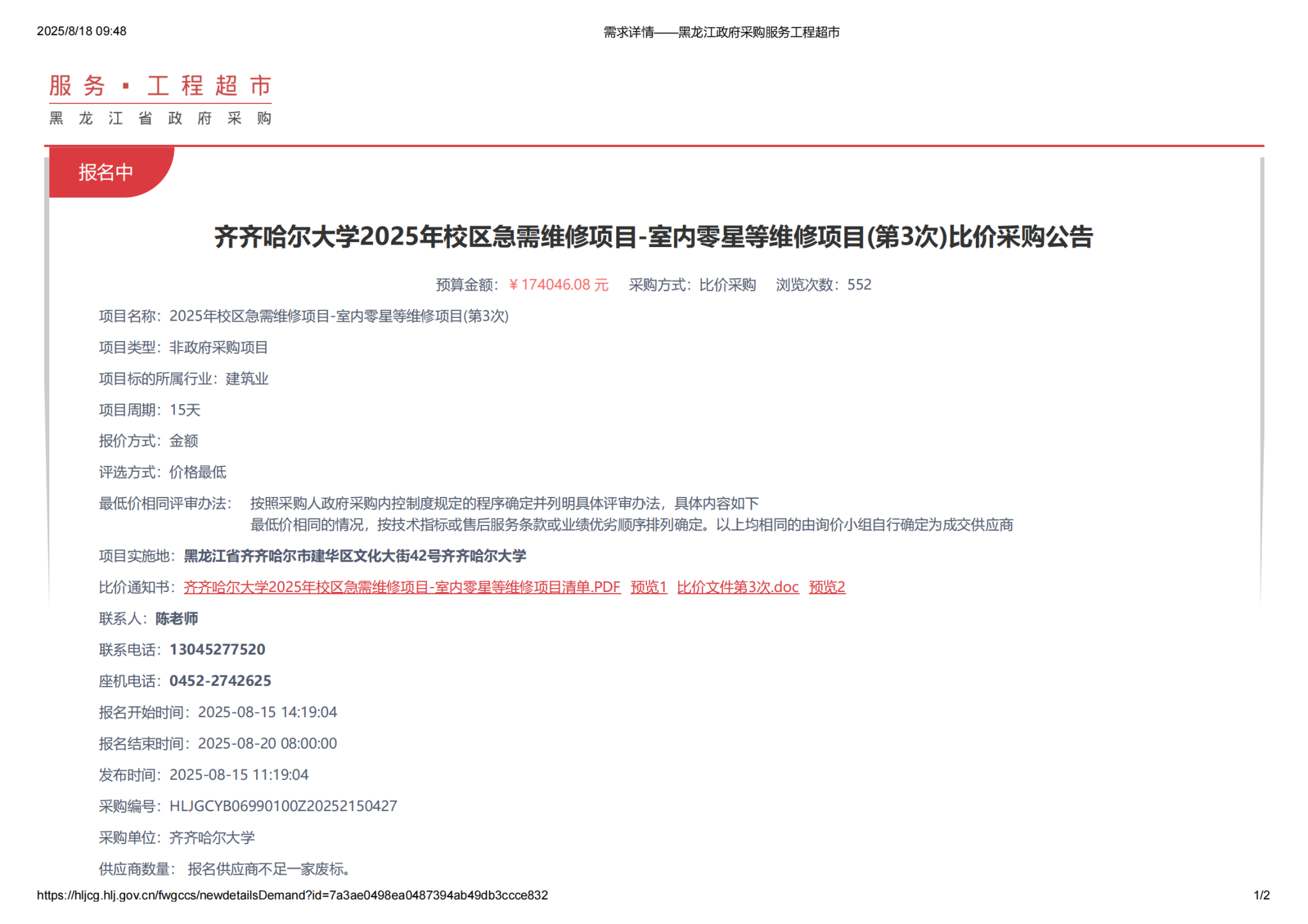 下一条:hg0022体育皇冠地址2025年校区急需维修项目-室内零星等维修项目(第2次)比价采购公告-废标(转自黑龙江省政府采购网)