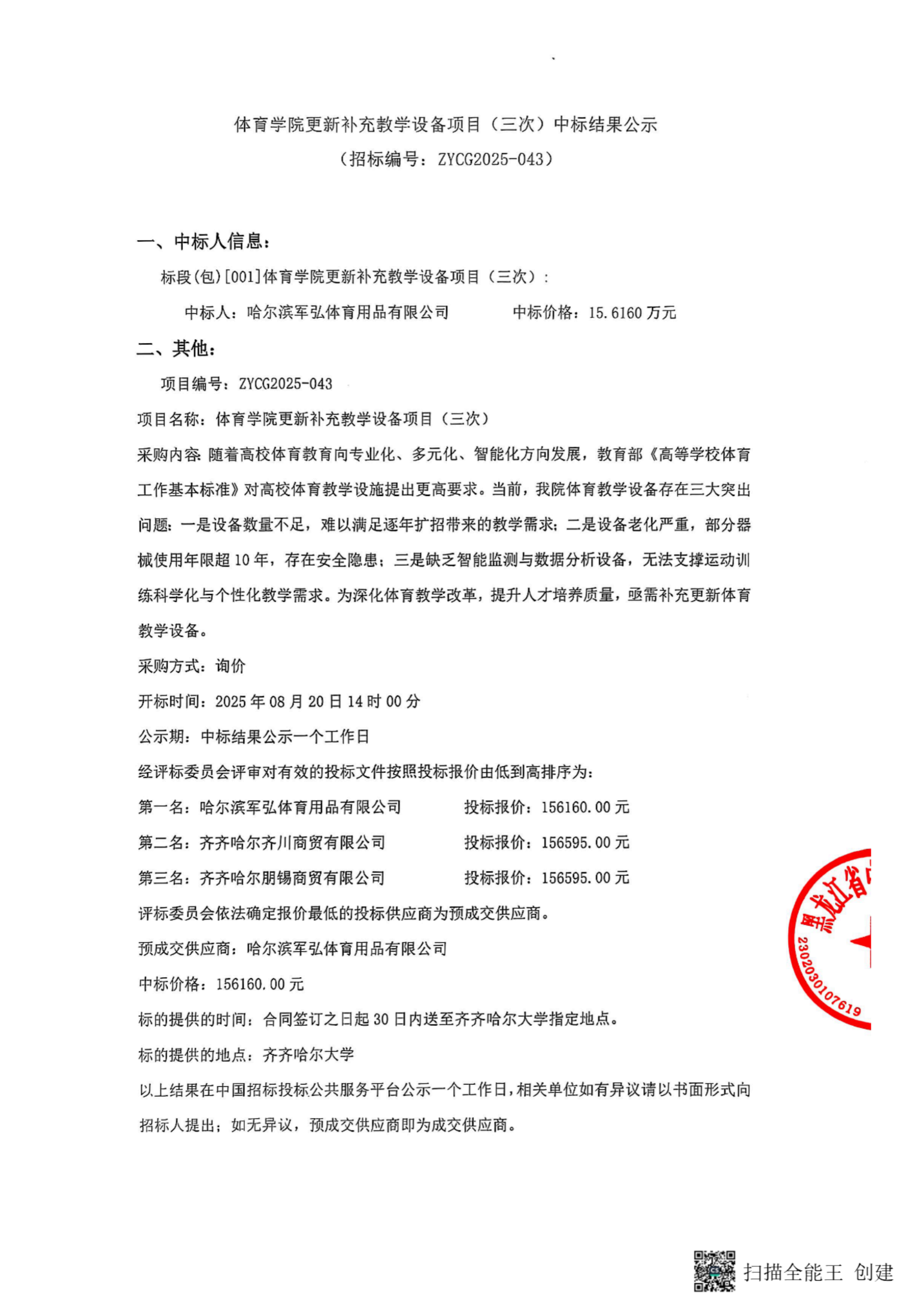 上一条:文学与历史文化学院(新闻传播学院)更新补充教学设备项目(三次)流标公告(转自中国招标投标公共服务平台)