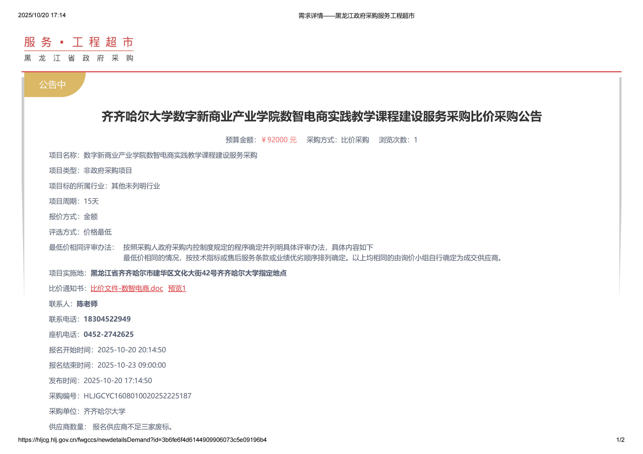 上一条:hg0022体育皇冠地址数字新商业产业学院数字营销实践教学课程建设服务采购比价采购公告(转自黑龙江省政府采购网)