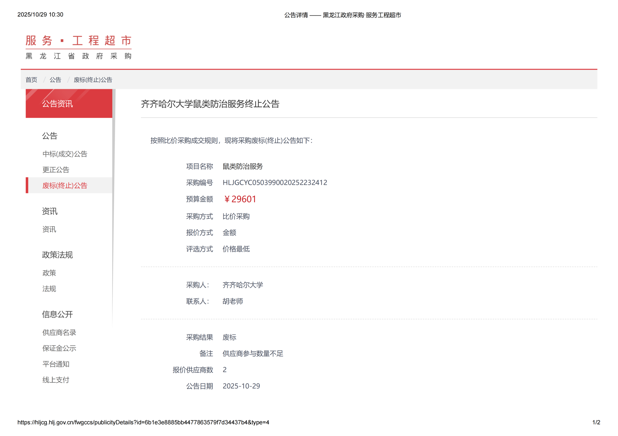 上一条:hg0022体育皇冠地址鼠类防治服务(第2次)比价采购公告(转自黑龙江省政府采购网)