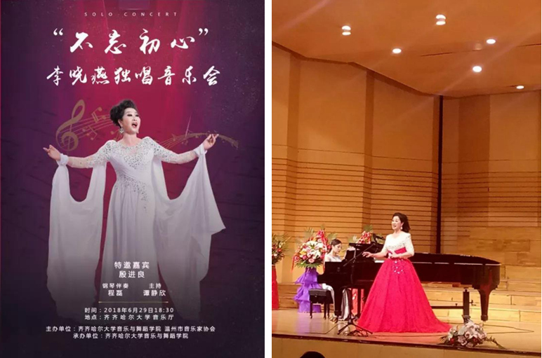 6月29日晚,“嫩水情思,不忘初心”——李晓燕教授独唱音乐会在hg0022体育皇冠地址音乐厅成功举行。本场音乐会无扩音演唱,给齐齐哈尔音乐爱好者带来一场高雅音乐盛宴。虽然没有用麦克但李晓燕教授清澈嘹亮、充满张力的声音回荡在整个音乐厅。