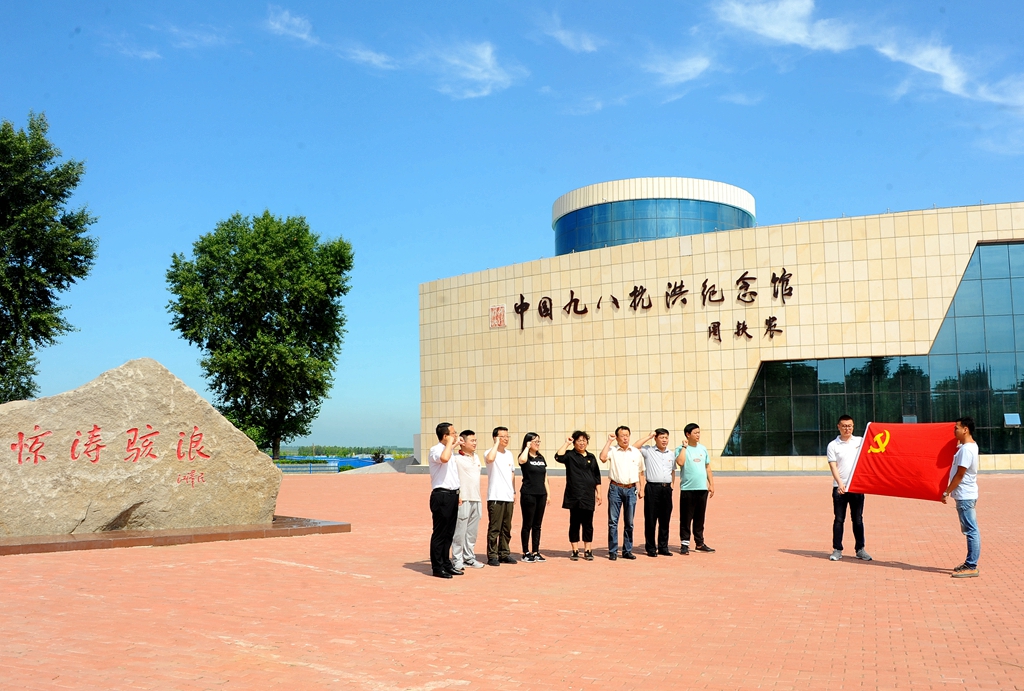 6月30日上午,全体党员来到中国(大兴)九八抗洪纪念馆,感受20年前那场惊心动魄的洪水保卫战,弘扬伟大的抗洪精神。1998年,泰来县遭受了百年不遇特大洪水的袭击,为永远铭记“九八”抗洪历史,泰来县委县政府在洪生新村原有遗址基础上,投资兴建中国“九八”抗洪纪念馆。中国“九八”抗洪纪念馆为子孙后代备份了真实的历史资料,是进行爱国主义教育的重要基地。党员们在两份写在烟盒上的决心书前久久驻足、表情凝重,这是战士们奔赴抗洪一线前对党和人民许下的承诺,承载在战士们对党和人民厚重的使命和情谊。党员们纷纷表示,20年前抗洪抢险的画面仍历历在目,伟大的抗洪精神永远值得我们学习和弘扬。