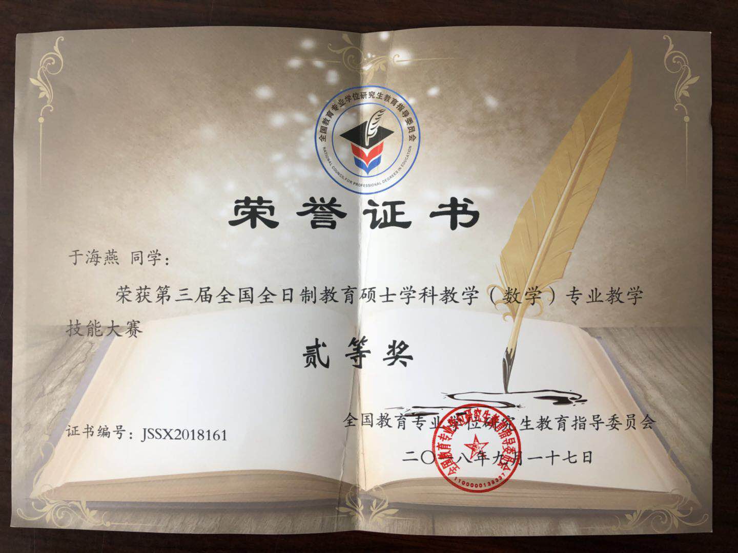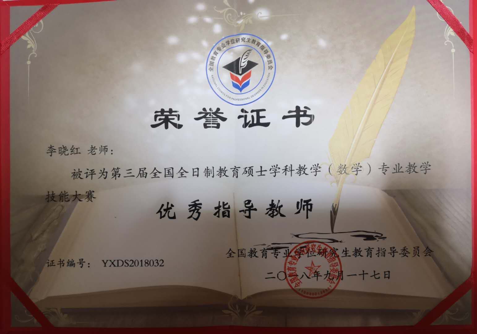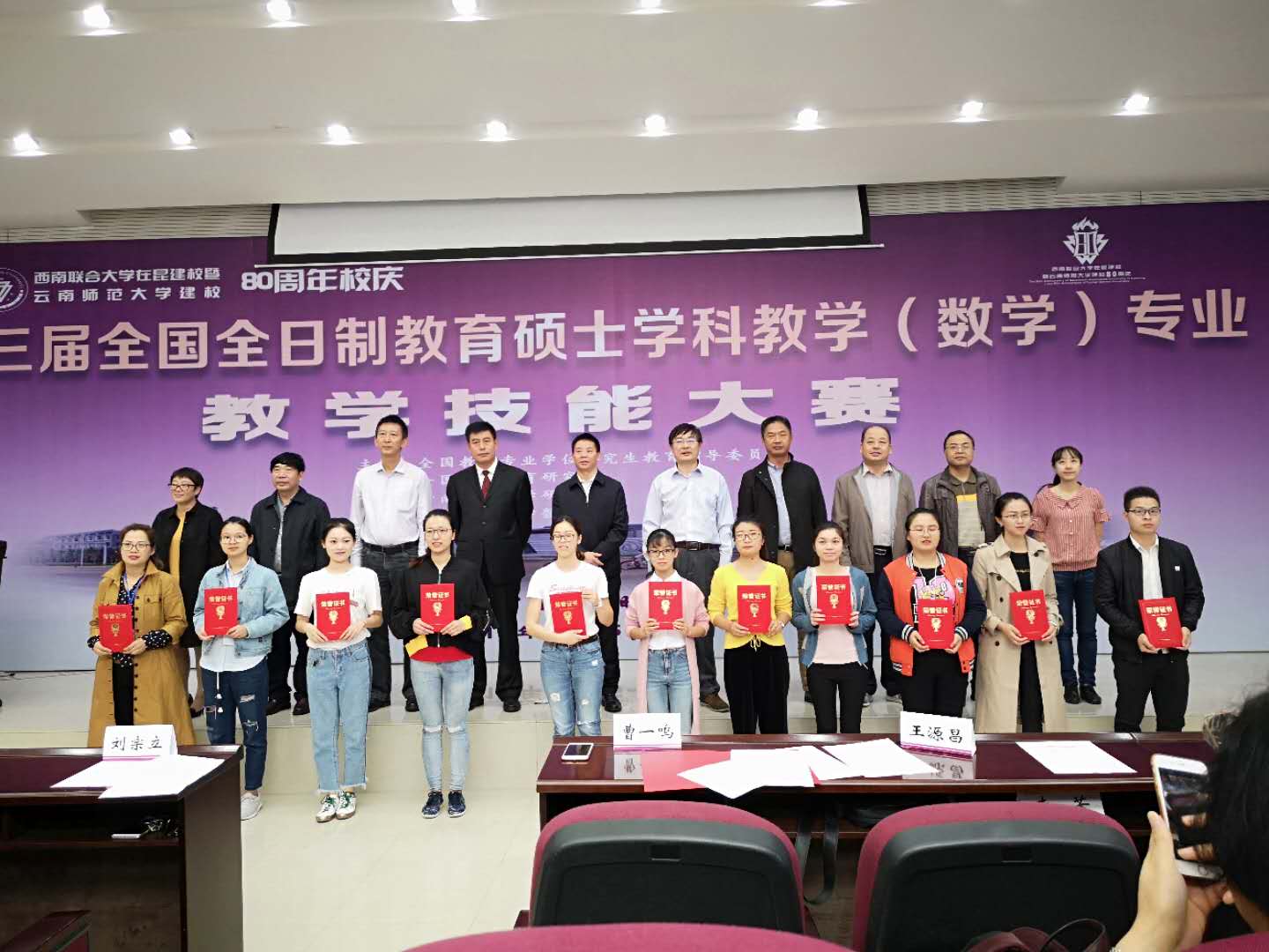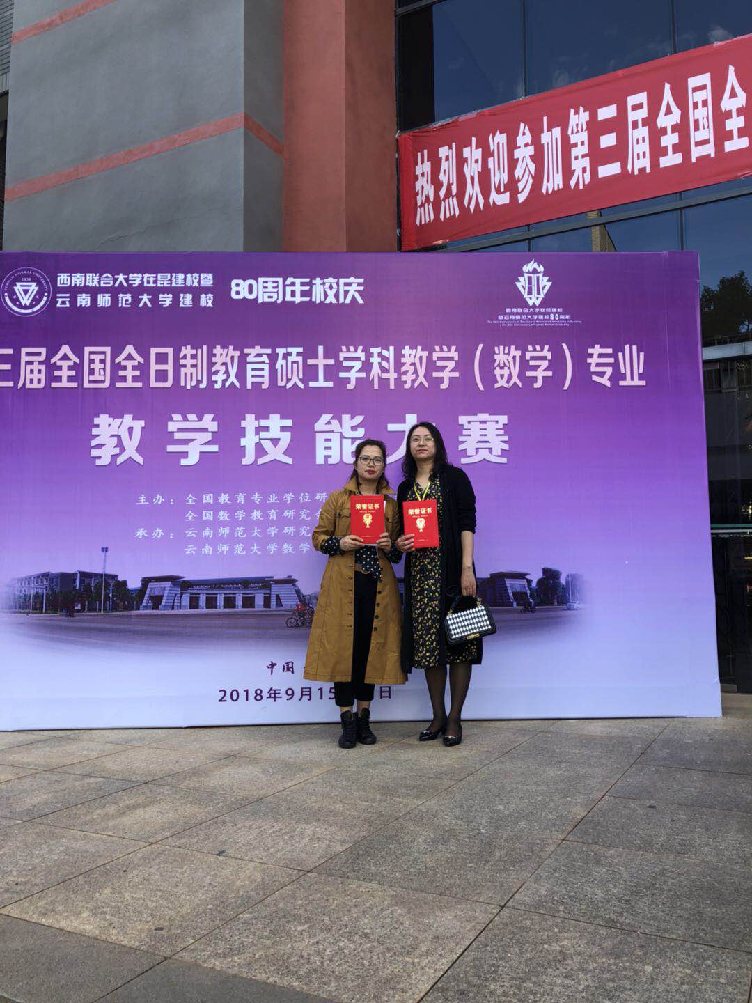 第三届全国全日制教育硕士学科教学(数学)专业教学技能大赛于2018年9月17日在云南师范大学落下帷幕,hg0022体育皇冠地址理学院学科教学(数学)领域2017级研究生于海燕进入决赛,经过激烈角逐,荣获贰等奖,导师李晓红教授荣获优秀指导教师称号。