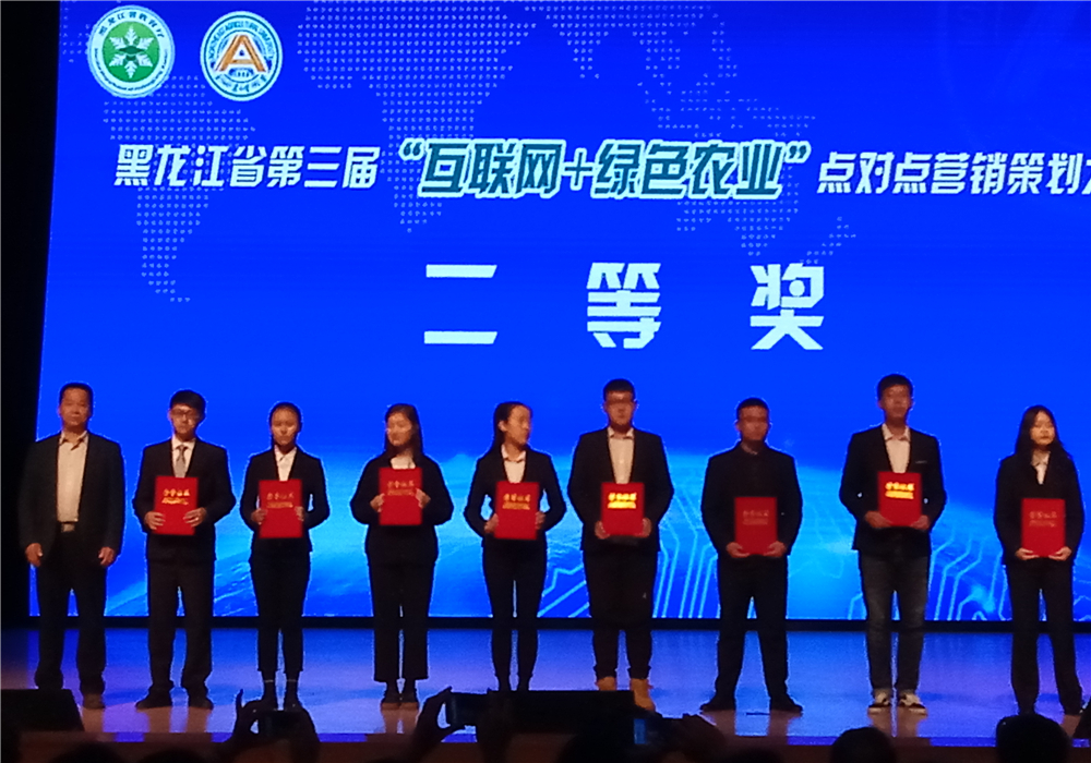 10月9日,由黑龙江省教育厅主办的第三届“互联网+绿色农业”点对点营销策划大赛决赛在东北农业大学落下帷幕。我校3个参赛项目团队榜上有名, 其中《库木勒商城营销策划方案》、《互联网+“稻习粮长”大米系类包装设计》2个项目荣获二等奖;《鲁昱品牌系列包装设计》荣获三等奖;我校荣获优秀组织奖。