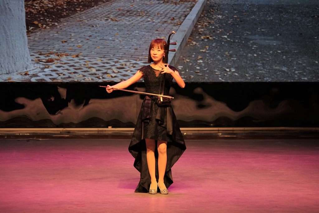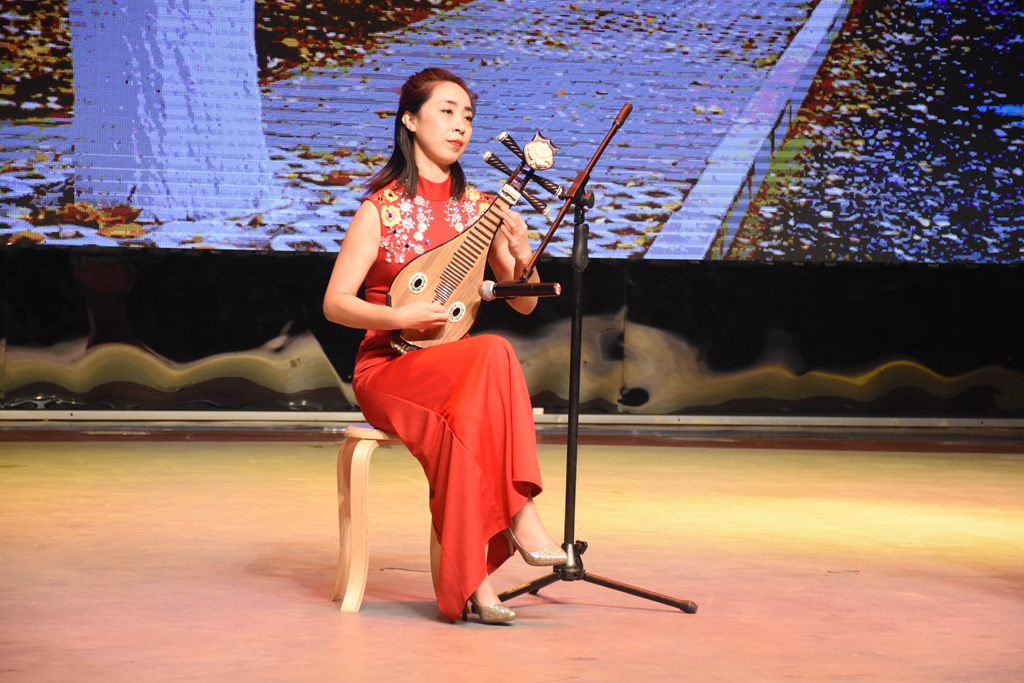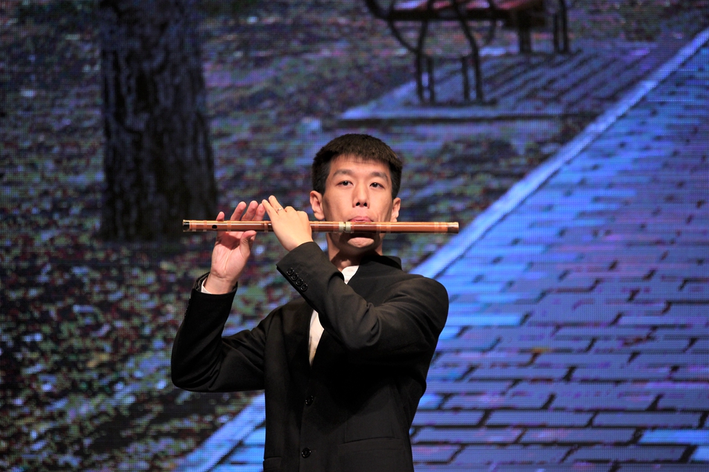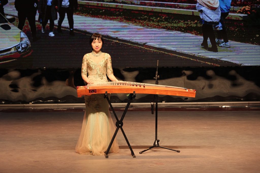 演出十分精彩,一首笛子齐奏《扬鞭催马运粮忙》拉开了本场演出的序幕。笛声时而急促,时而平缓,时而高昂,时而低沉,时而犹如骏马奔驰长河落日般壮观,时而犹如细雨清风潺潺流水般平静,为现场观众们带来了一场听觉盛宴;男声独唱《乌苏里船歌》和《鸿雁》则铿锵有力,充满豪情;一首古筝弹奏曲《边疆泉水清又纯》给大家描绘了一幅浪漫和谐的画面,弹奏者徐婷婷穿着一袭长裙,纤纤十指,带领大家充分领略了古典乐器的魅力。