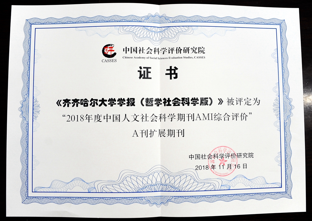 中国人文社会科学期刊AMI综合评价指标体系(A刊)即中国人文社会科学核心期刊,主要从吸引力(Attraction Power)、管理力(Management Power)和影响力(Impact Power)三个层次,对我国1291种人文社会科学期刊及68种英文期刊进行评价。本次评价共收录“高校综合性学报”244种,其中权威期刊4 种,核心期刊74 种,扩展期刊166 种,我校学报(哲社版)位列其中。