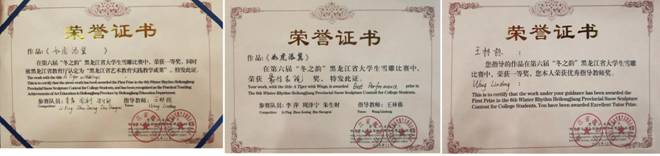 此次比赛由黑龙江省教育厅主办,共收到200多件作品,经初评,29所高等院校的35支参赛队伍作品入围参加“冬之韵”雪雕比赛。经评委评审,hg0022体育皇冠地址代表队作品《如虎添翼》、哈尔滨商业大学代表队作品《机械先驱》、黑龙江工程学院代表队作品《冬天的旋律》获得普通组一等奖,哈尔滨工程大学代表队作品《塞舌尔》获留学生组一等奖。