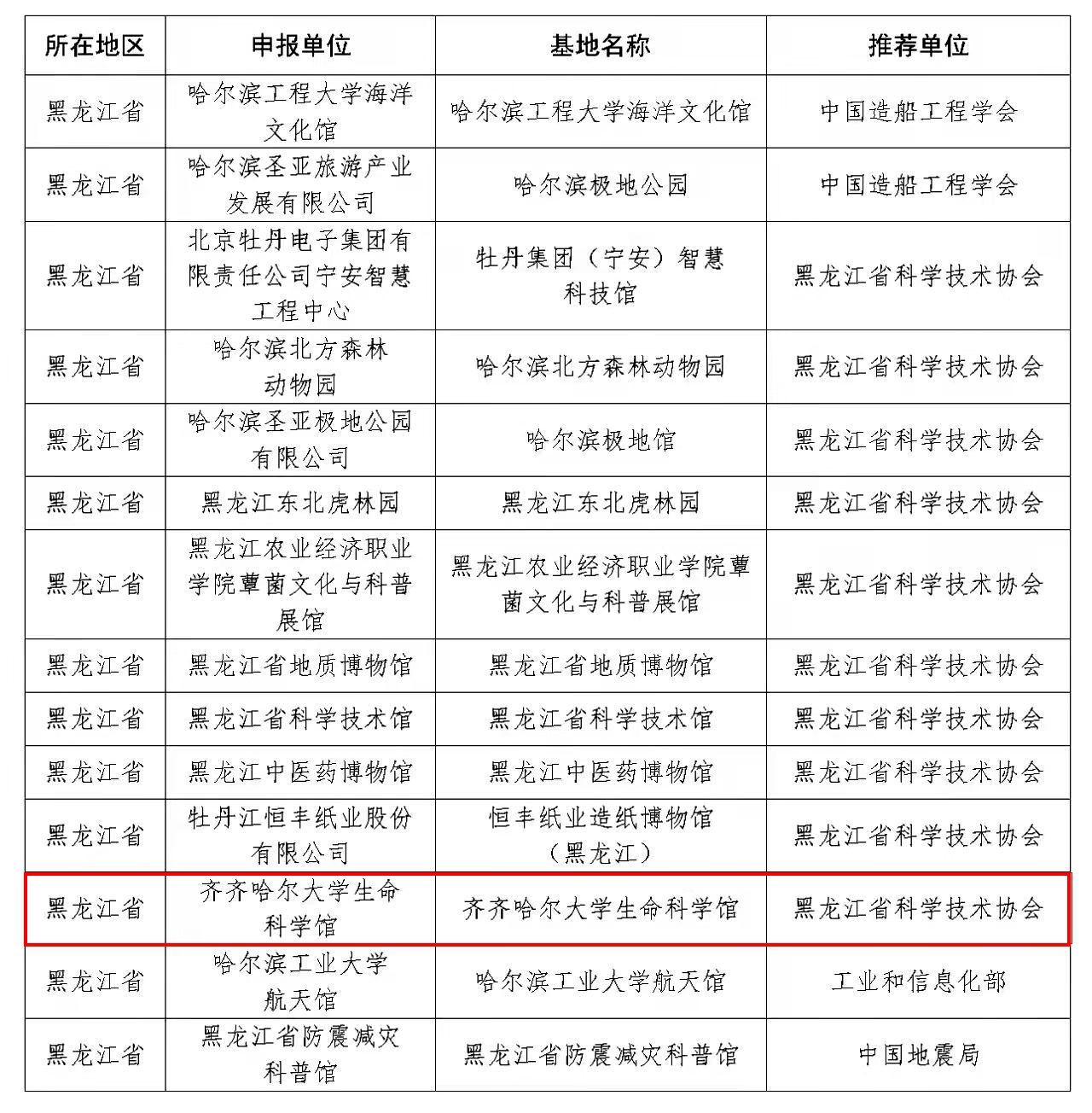 我校生命科学馆被认定为全国科普教育基地,表明我校多年扎实开展科学普及工作赢得了国家和社会的认可。hg0022体育皇冠地址生命科学馆将坚持求实创新,持续加强基地科普队伍和科普信息化建设,着重打造特色亮点,提升科普服务功能,促进基地全面发展,在中国科协和省市科协等各级组织的关怀下,充分发挥科普基地的教育功能,为黑龙江省西部地区的人才培养、科学研究和科普教育工作做出新的贡献。