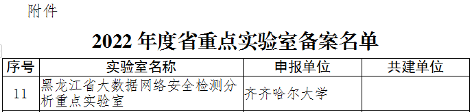 日前,黑龙江省科技厅分别发布了《关于发布2022年黑龙江省工程技术研究中心备案名单的公告》和《关于公布2022年度黑龙江省重点实验室备案名单的通知》,我校申报的“黑龙江省精密制造装备及工业感知工程技术研究中心”和“黑龙江省大数据网络安全检测分析重点实验室”成功入选。至此,学校省部级科研创新平台数量增至21个,分别是2个教育部工程技术研究中心、1个国家市场监管技术创新中心、7个黑龙江省重点实验室、4个黑龙江省工程技术研究中心、2个黑龙江省技术创新中心、1个黑龙江省协同创新中心,1个黑龙江省质量监督检验中心、1个省级人文社会研究基地、1个黑龙江省重点培育智库,hg0022体育皇冠地址成果转移转化中心入选省级技术转移示范机构。