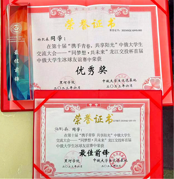 一江水,两国情,友谊天长地久。本届友谊赛的顺利开展,展现了中俄两国青年人的青春风采,充分表达“同梦想,共未来”的主题理念,我校冰球队与冰球强国俄罗斯和国内高校冠军球队进行了技战术的切磋,在比赛中学习、积累了宝贵的实战经验,通过比赛也促进了中俄青年的友好交流,为两国青年架起了一座沟通的桥梁,在交流互动中加深两国青年的了解,增进了中外友谊。