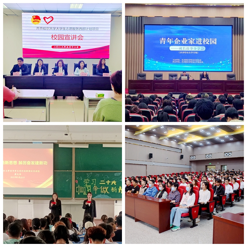 “情理兼修”是习近平总书记对当代青年人提出的新要求,在主题教育理论宣讲中,校团委坚持不仅要言之有理,还应言之有情,做到通情达理、情理交融、合情合理、入情入理,让学生产生情感共鸣。学校大学生宣讲团将学习贯彻习近平新时代中国特色社会主义思想同党的二十大学习宣讲、大学生志愿服务等相结合,深入学习贯彻习近平总书记关于青年工作的重要思想,坚持以学增智,创新实施全校团学干部“第一议题”学习制度,组织校研习会分别于4月12日和5月24日开展深入学习党的二十大精神巡回宣讲,以“齐大青年公众号”为载体持续开展“二十大”云宣讲,组织全校青年共同学习习近平给中国农业大学科技小院的学生回信,举办第六期”青马工程培训班暨第四期入团积极分子培训班并持续开展学习辅导,召开2023年大学生志愿服务西部计划项目宣讲会和青年企业家进校园成长故事分享会,融情于理、寓理于情,多措并举推动习近平新时代中国特色社会主义思想入脑入心。