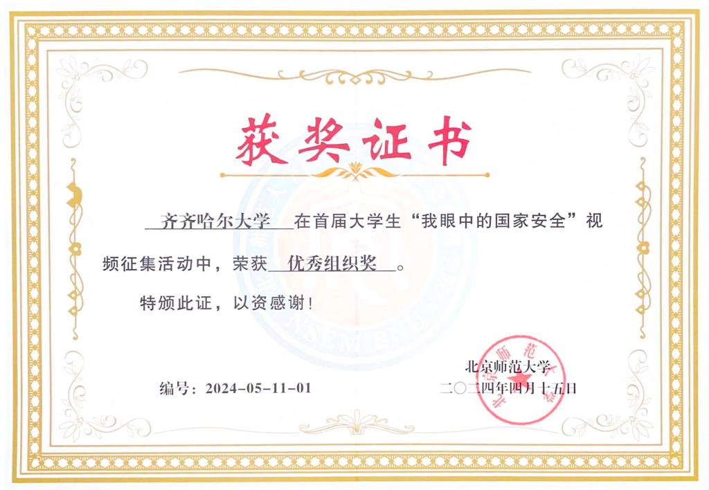 近日,由北京师范大学发起题为“总体国家安全观·创新引领10周年之大学生眼中的国家安全”的首届大学生《我眼中的国家安全》视频征集活动获奖名单公布。活动开展以来,我校学生踊跃报名,共征集微视频作品30件。其中,学生获优秀奖5项,学校获优秀组织奖。