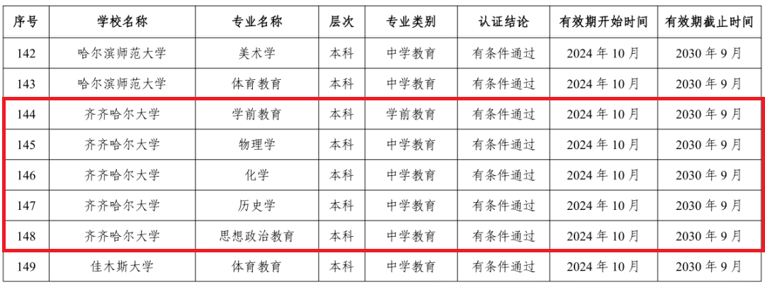 近日,教育部办公厅发布《关于公布2024年通过普通高等学校师范类专业认证及认证中期审核专业名单的通知》(教师厅函〔2024〕20号),我校学前教育、物理学、化学、历史学、思想政治教育等5个专业通过教育部师范类专业第二级认证,认证结论有效期为2024年10月至2030年9月;生物科学专业通过中期考核,继续保持有效期至2027年8月。
