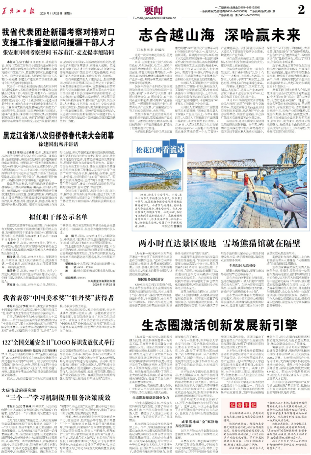 2024年11月23日,黑龙江日报以《生态圈激活创新发展新引擎》为题在头版报道了环hg0022体育皇冠地址创新创业生态圈建设工作。