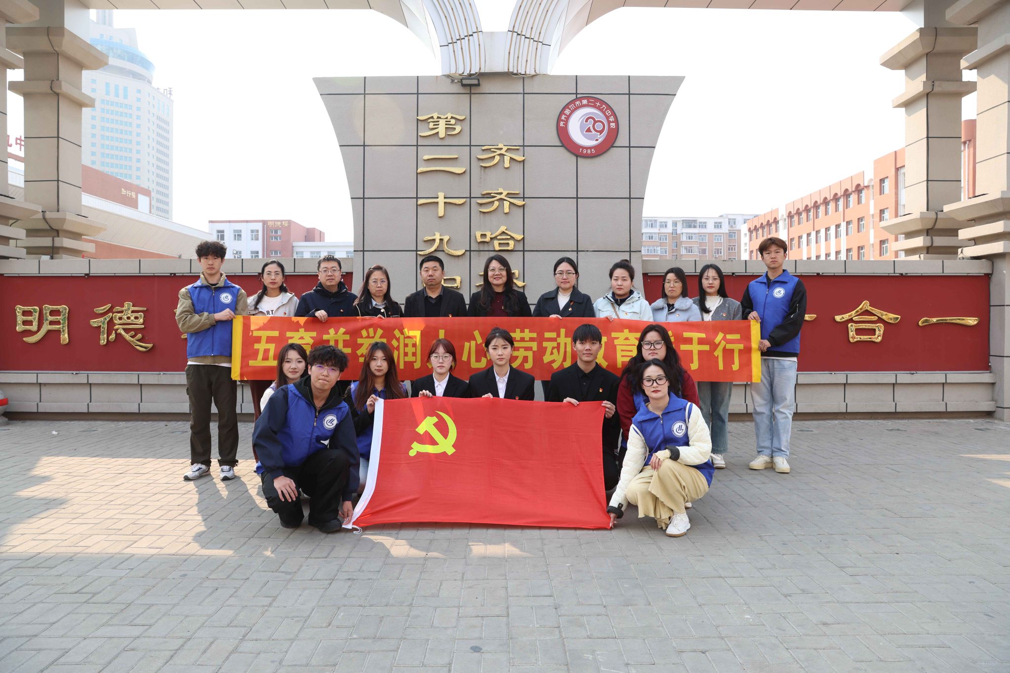 为深入贯彻落实习近平总书记关于学校思政课建设的重要指示精神,深入推进大中小学思想政治教育一体化建设,推动劳动教育与思政教育深度融合,充分发挥高校服务社会、回馈社会的先锋引领作用,4月27日,我校化学与化学工程学院师生党员20余人走进市第二十九中学开展思想政治教育一体化实践活动。