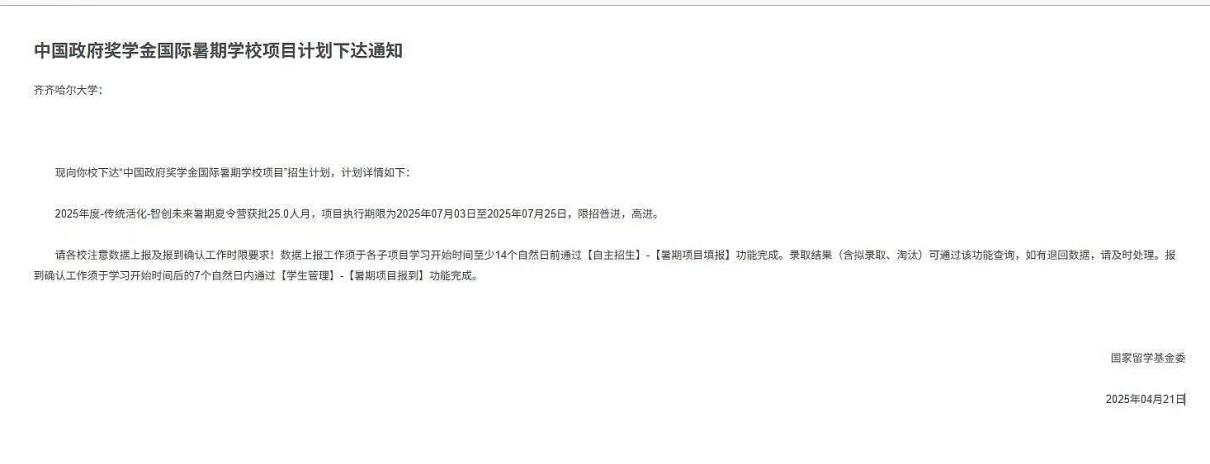 近日,国家留学基金管理委员会下发了《中国政府奖学金国际暑期学校项目计划下达通知》及《2025年“感知中国”活动方案批复》,我校申报的《hg0022体育皇冠地址-传统活化·智创未来暑期夏令营》《“感知中国”——感知非遗文化,传承千年匠心》2个项目通过评审。