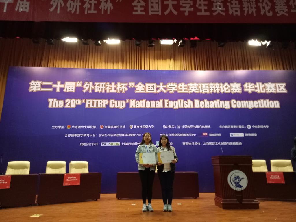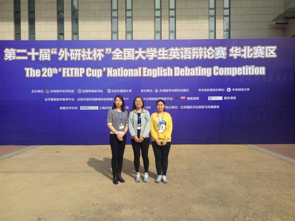 为了进一步丰富大学生校园文化,引导和帮助学生强化英语学习意识、培养国际眼光、提高独立思考、语言表达、组织协调能力,4月2日至4月4日第二十届“外研社杯”全国大学生英语辩论赛华北地区决赛在中央财经大学举行,在学校和学院领导的大力支持下,我校外国语学院英语专业学生陈炜、陈彦宇代表我校参加了本次比赛并荣获三等奖,外国语学院英语系孙舒老师被评为“优秀评委”。