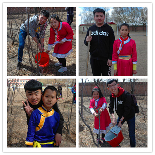 捐资助学仪式结束后,领导及师生一行人来到了哈拉达族小学的“鸿雁工程林”,并在这片食品学院与哈拉达族小学20年情感从未间断的土地上植下了一棵棵“励志树”,这些小小的树苗除了代表着友谊、爱心和奉献以外,还代表了齐大师生所给予的希望与肩上的责任。希望食品与生物工程学院能与哈拉达小学校建立更长久的友好共建关系。志愿服务小分队的同学们与小学生们一同进行着丰富有趣的游戏,操场上不断传来师生们和孩子们喜悦的笑声。