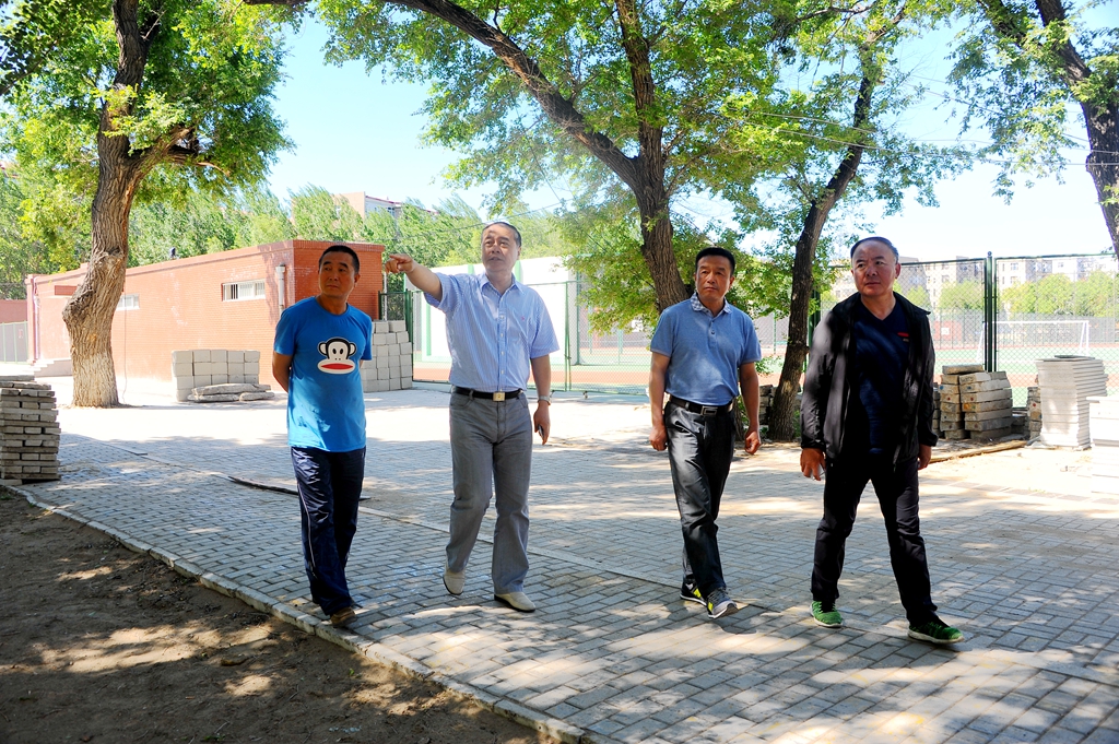为推进学校各项修缮工程进度,保证校园道路畅通和施工安全,创造良好的校园环境,6月8日上午,副校长王刚在后勤党委书记李军,后勤管理处处长尹鸥,后勤管理处副处长麒麟、韩士华、杜立群的陪同下,深入逸夫楼、东区图书馆、学生11公寓周边的道路环境建设工程现场检查指导工作。