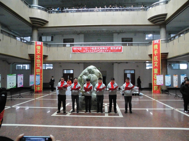 为加强我省学校艾滋病防治宣传教育工作,营造积极向上的预防与防治氛围,2016年“世界艾滋病日”宣传活动期间,省卫生计生委和省教育厅联合发起了全省学校艾滋病防治宣传月暨高校预防艾滋病辩论比赛活动。接到通知后,我校高度重视,组织相关部门开展了各类防艾活动:2016年“12.1”世界艾滋病日,后勤管理处与市疾病控制中心以我校西区主楼阳光大厅作为宣传主会场,采取多种方式进行了防控宣传,并在活动结束后进行了全市高校的艾滋病发病情况通报。
