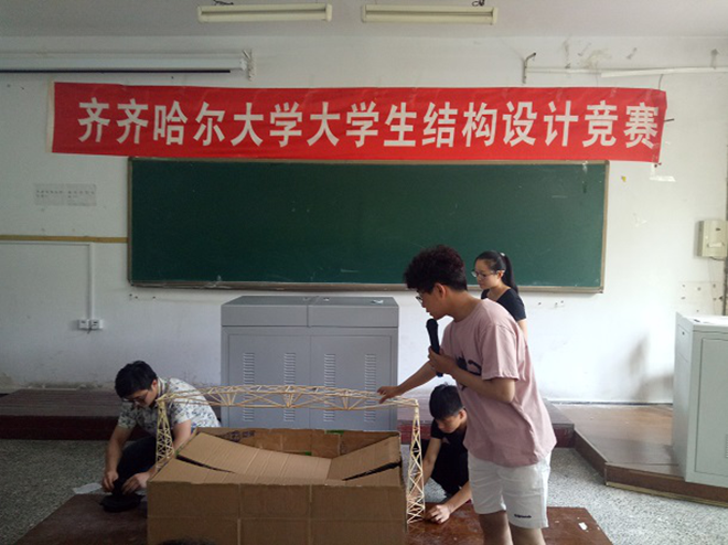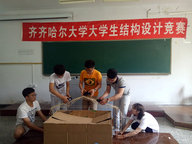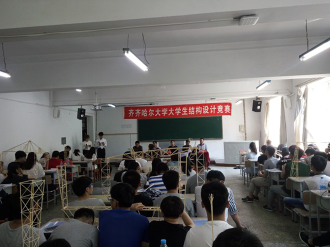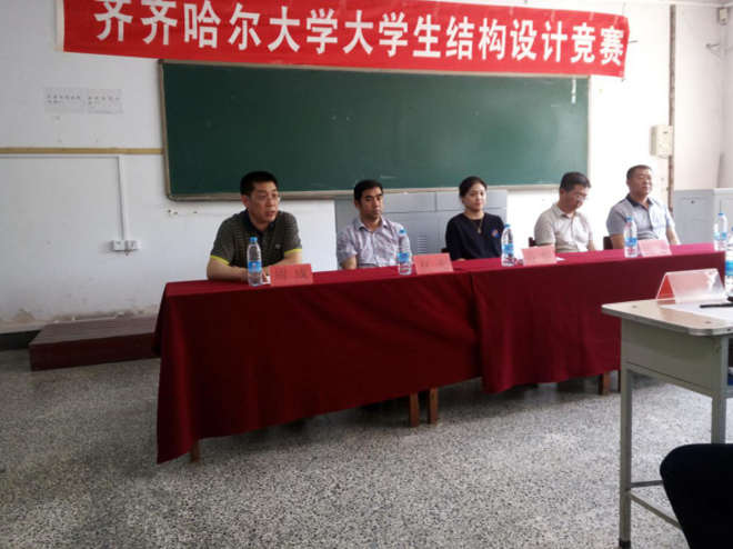 为培养我校大学生的工程创新、团队协作和实践能力,加强专业知识与工程实践的结合,同时也为了响应黑龙江省教育厅下发的结构设计竞赛通知,6月14日下午,由建筑与土木工程学院承办的hg0022体育皇冠地址结构设计大赛在3教206室举行。校团委副书记苏醒、校教学实验设备管理中心副主任祝文生、校教务处副处长祝光、建筑与土木工程学院党委书记樊友才、院长周成出席了本次比赛。竞赛评委由建筑与土木工程学院副院长张道明、土木工程专业系主任吕春、机电工程学院理论力学教研室孟凡弘、土木工程专业教师王蕊、王洪志组成。